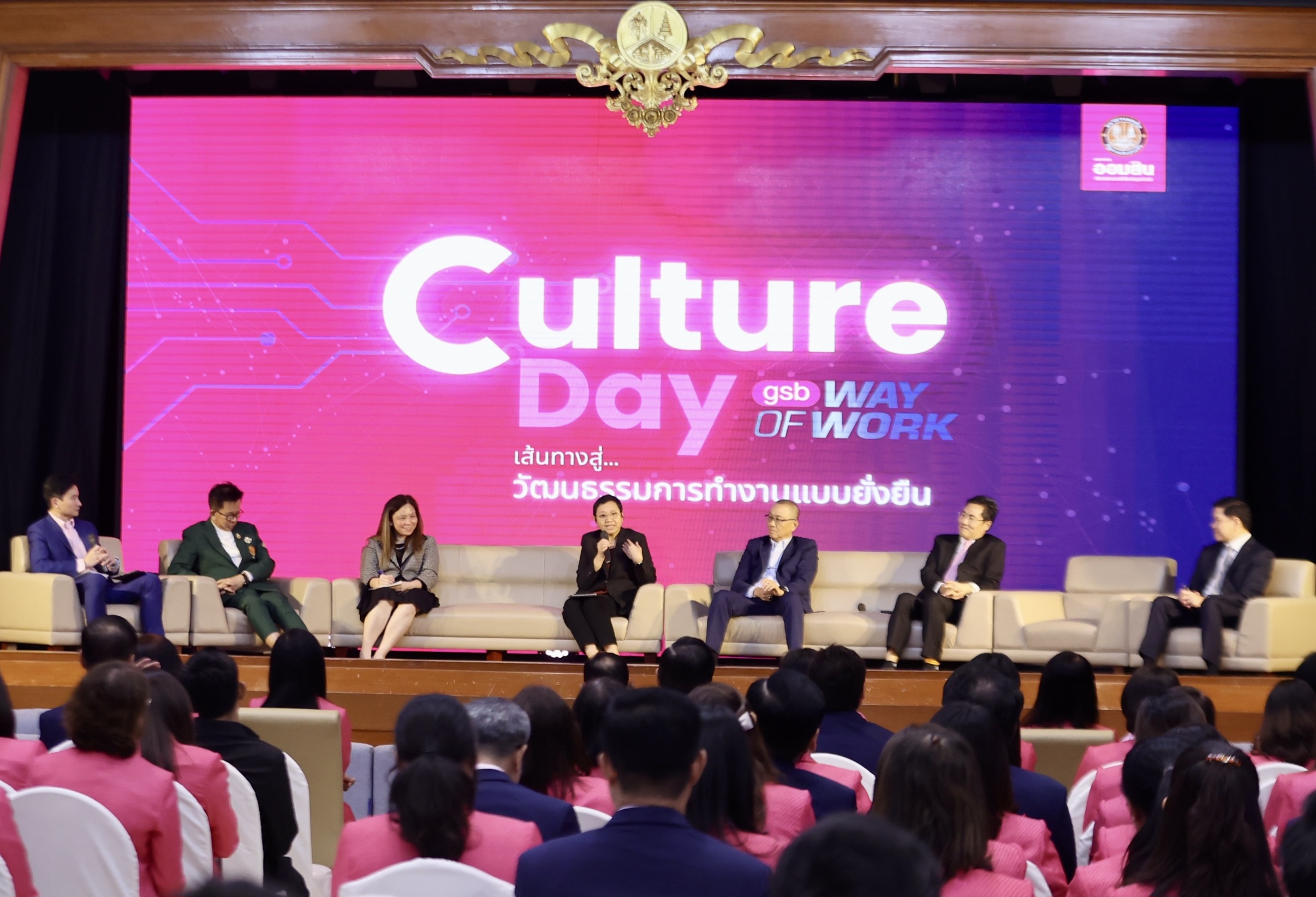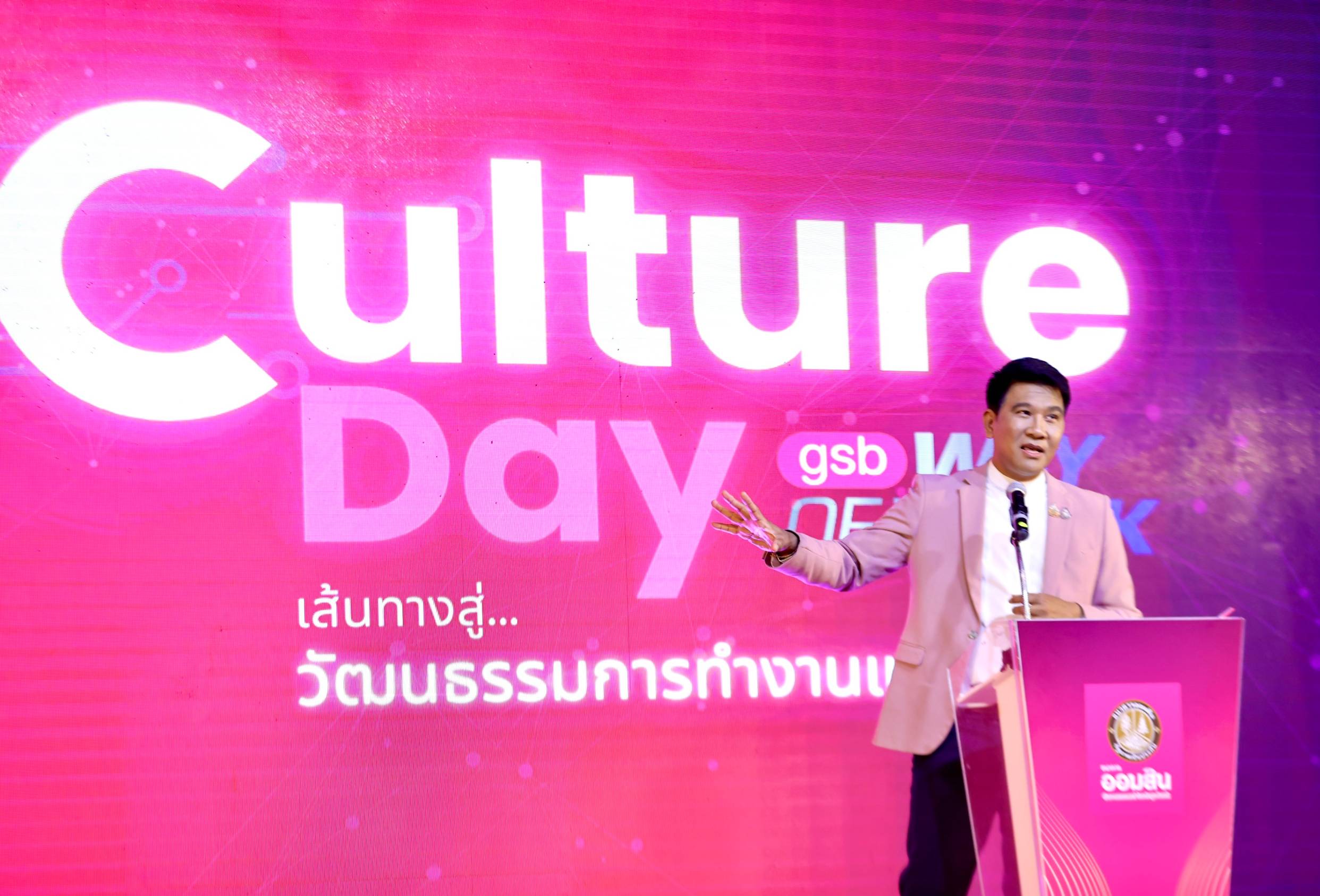 โดยงาน Culture Day จัดขึ้นเพื่อขับเคลื่อนการมีส่วนร่วมของบุคลากรทั้งองค์กร ในการให้ความรู้ ตลอดจนแลกเปลี่ยนเรียนรู้ และเน้นย้ำการสร้างพฤติกรรมตามค่านิยมขององค์กร ที่สอดคล้องกับบริบทการเป็นธนาคารเพื่อสังคม ซึ่งประกอบด้วย 3 เรื่องหลัก ได้แก่ การทำงานเพื่อสังคม (for Society) ด้วยการเสริมสร้างจุดแข็งการเป็นธนาคารเพื่อสังคม ลดความเหลื่อมล้ำ และสร้างความเป็นธรรมในสังคม อย่างมีธรรมาภิบาล (with Governance) คือ โปร่งใส มีคุณธรรม จริยธรรม ปฏิบัติตามหลักเกณฑ์ และกล้ายืนหยัดในความถูกต้อง และด้วยวิธีทันสมัย (through Digitalization) ใช้เทคโนโลยีและข้อมูล เพื่อทำให้ทุกงาน ง่าย เร็ว และมีประสิทธิผลมากขึ้น