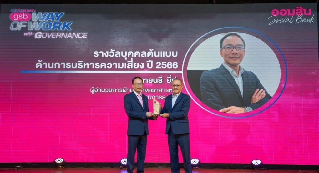 นอกจากนี้ ยังมีการมอบรางวัลหน่วยงานและบุคคลต้นแบบประจำปี ด้านการบริหารความเสี่ยง (Risk Management Award) และการจัดการความรู้ (KM Award) พร้อมออกบูธนิทรรศการให้ความรู้และกิจกรรมจำนวนมาก ได้แก่ การกำกับดูแลที่ดีและการนำองค์กร การวางแผนเชิงยุทธศาสตร์ การบริหารความเสี่ยงและการควบคุมภายใน การมุ่งเน้นผู้มีส่วนได้ส่วนเสียและลูกค้า การตรวจสอบภายใน การพัฒนาเทคโนโลยีดิจิทัล การบริหารทุนมนุษย์ และการจัดการความรู้และนวัตกรรม รวมถึงกระตุ้นการสร้างพฤติกรรมการมีส่วนร่วมของพนักงาน โดยใช้คะแนนสะสมในระบบ GSB Way Point ผ่านระบบบริหารทรัพยากรบุคคล (Modern Employee on Mobile : MEMO) บนมือถือ