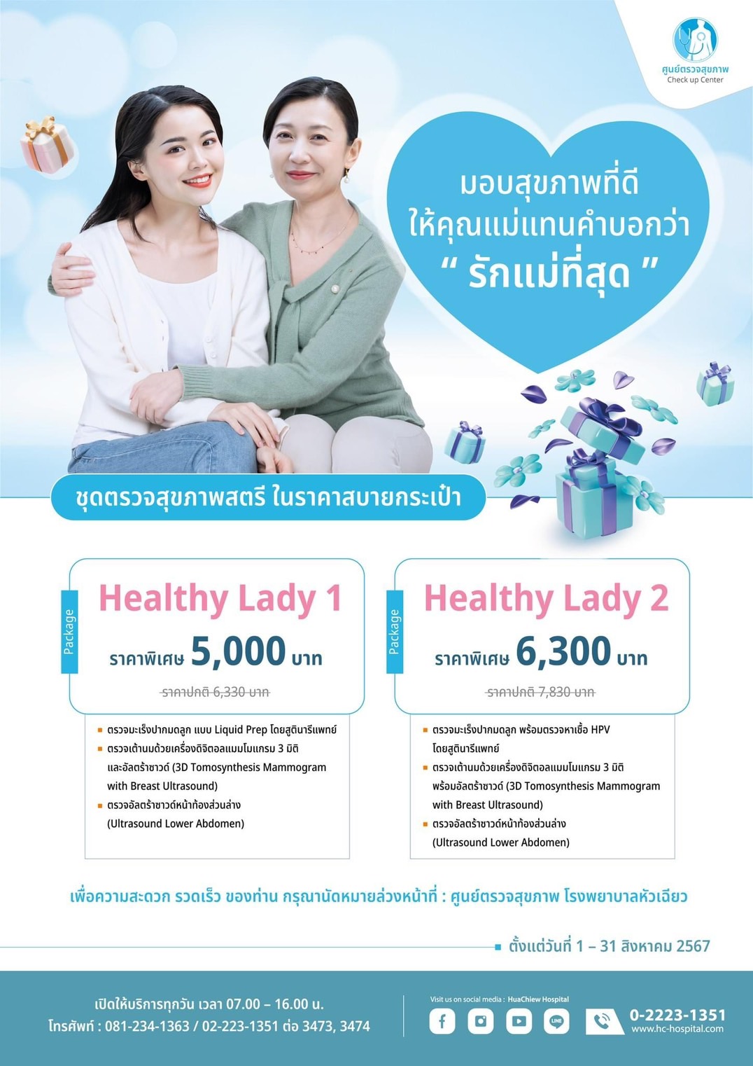 โรงพยาบาลหัวเฉียว พร้อมดูแลคุณสุภาพสตรี ด้วย.. ชุดตรวจสุขภาพสตรี ในราคาสบายกระเป๋า ตรวจสุขภาพแบบเจาะลึกก่อน ป้องกันได้ และรักษาทัน โดย.. สุตินรีแพทย์ผู้ชำนาญการ พร้อมเครื่องตรวจดิจิตอลแมมโมแกรม 3 มิติและอัลตร้าชาวด์