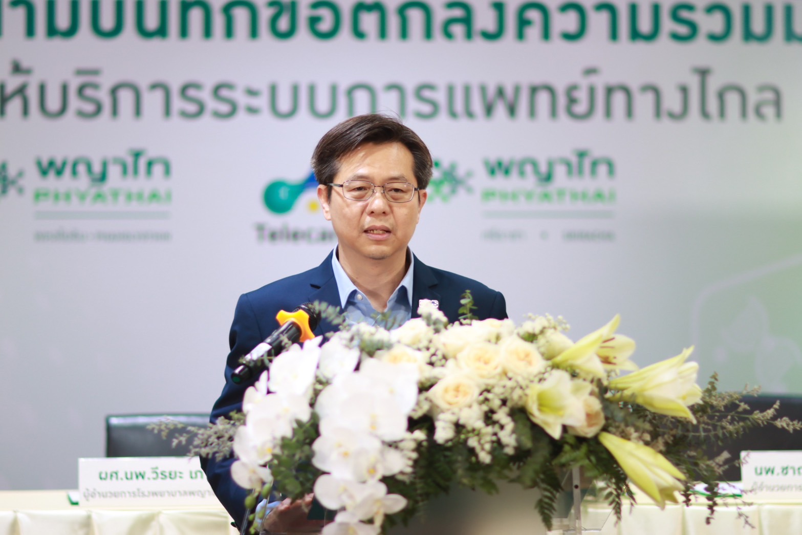 ศรีราชา - เมื่อเร็ว ๆ นี้ โรงพยาบาลพญาไทศรีราชา นำโดย นายแพทย์ชาญชัย ลี้สมประสงค์ ผู้อำนวยการโรงพยาบาล และ ผู้ช่วยศาสตราจารย์ นายแพทย์วีรยะ เภาเจริญ ผู้อำนวยการโรงพยาบาลพญาไท พหลโยธิน จัดพิธีลงนามบันทึกข้อตกลงความร่วมมือเปิดบริการ TELECARE 24 ชั่วโมง เพื่อผนึกกำลังยกระดับการบริการทางการแพทย์ออนไลน์ที่สะดวก รวดเร็ว เข้าถึงข้อมูลสุขภาพได้ง่าย ทุกที่ทุกเวลา ตอบโจทย์ทุกไลฟ์สไตล์ทุกความต้องการของการดูแลสุขภาพอย่างครอบคลุม โดยในงานมี นายแพทย์ไกรภพ จารุไพบูลย์ ผู้อำนวยการกลุ่มงานนวัตกรรม-เทคโนโลยีทางการแพทย์ และความร่วมมือระหว่างประเทศ ให้เกียรติร่วมงานพิธีลงนาม