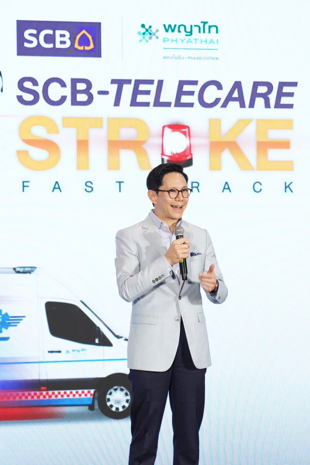 คุณกฤษณ์ จันทโนทก ประธานเจ้าหน้าที่บริหาร ธนาคารไทยพาณิชย์ กล่าวว่า ธนาคารให้ความสำคัญกับการดูแลสุขภาพและความเป็นอยู่ที่ดีของพนักงานอย่างต่อเนื่อง เพราะเราเชื่อว่าความสำเร็จขององค์กรเริ่มต้นจากสุขภาพที่แข็งแรงของพนักงาน ซึ่งเป็นพื้นฐานสำคัญของการทำงานอย่างมีประสิทธิภาพ เราได้ร่วมมือกับโรงพยาบาลพญาไท พหลโยธิน พัฒนาโครงการ SCB Telecare มาตั้งแต่ต้นปี 2563 ด้วยการนำเทคโนโลยีระบบ Telemedicine และการดูแลสุขภาพเชิงรุกมาใช้ เพื่อให้พนักงานสามารถเข้าถึงข้อมูลสุขภาพและการรักษาพยาบาลออนไลน์ได้ทุกที่ทุกเวลาอย่างสะดวกสบาย ซึ่งได้รับการตอบรับเป็นอย่างดี และเป็นเครื่องมือสำคัญในการดูแลพนักงาน โดยเฉพาะในช่วงการระบาดของ COVID-19 ที่เราสามารถจัดส่งยาและเวชภัณฑ์ให้พนักงานถึงบ้านได้อย่างมีประสิทธิภาพ เรายังคงเดินหน้ายกระดับการดูแลสุขภาพพนักงาน โดยเฉพาะในการรับมือกับ ‘โรคหลอดเลือดสมอง’ ซึ่งเป็นภาวะฉุกเฉินที่ต้องการการรักษาอย่างเร่งด่วน ซึ่งมีเวลาเพียงแค่ 4.5 ชั่วโมง (Golden Period) หลังจากพบอาการ เพื่อเพิ่มโอกาสในการรักษาให้หายได้ปกติ ด้วยเหตุนี้ เราจึงได้ขยายความร่วมมือกับโรงพยาบาลพญาไท พหลโยธิน เปิดบริการฟีเจอร์ใหม่ ‘SCB Telecare Stroke Fast Track’ เพื่อเพิ่มศักยภาพและความสามารถในการดูแลพนักงานที่มีความเสี่ยงในการเจ็บป่วยด้วยโรคหลอดเลือดสมอง ให้ได้รับการรักษาอย่างรวดเร็วและมีประสิทธิภาพมากขึ้น ผ่านแพลตฟอร์ม Line OA ที่เข้าถึงง่ายและสะดวกต่อการใช้งาน