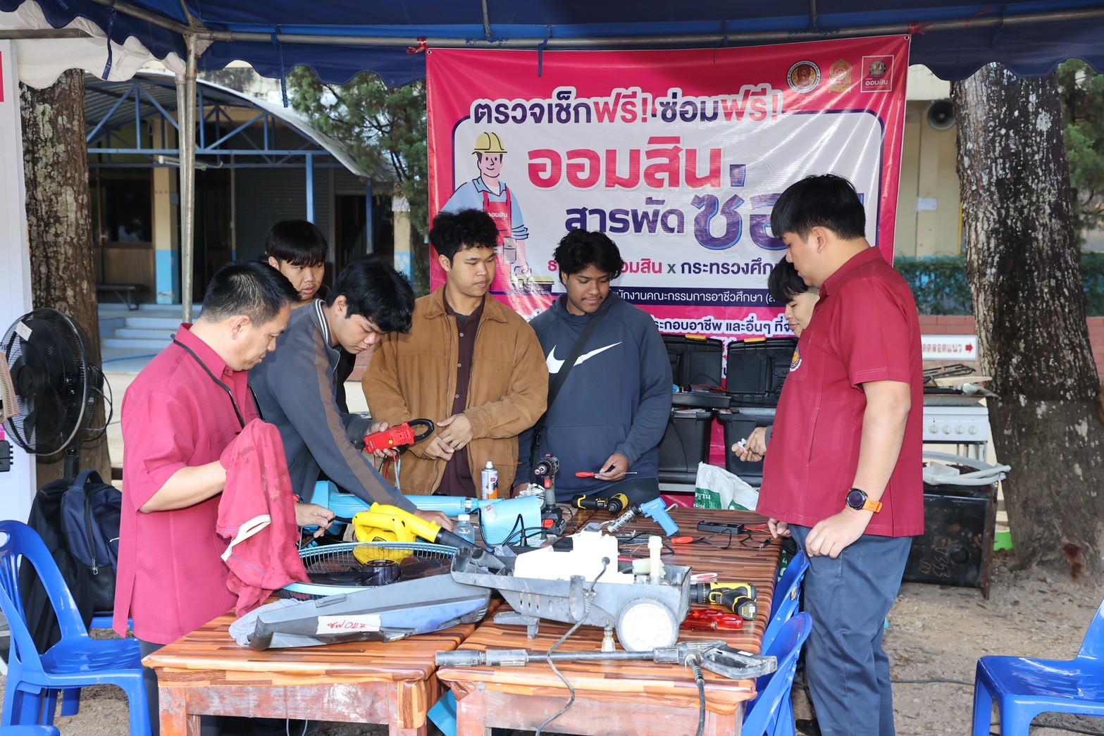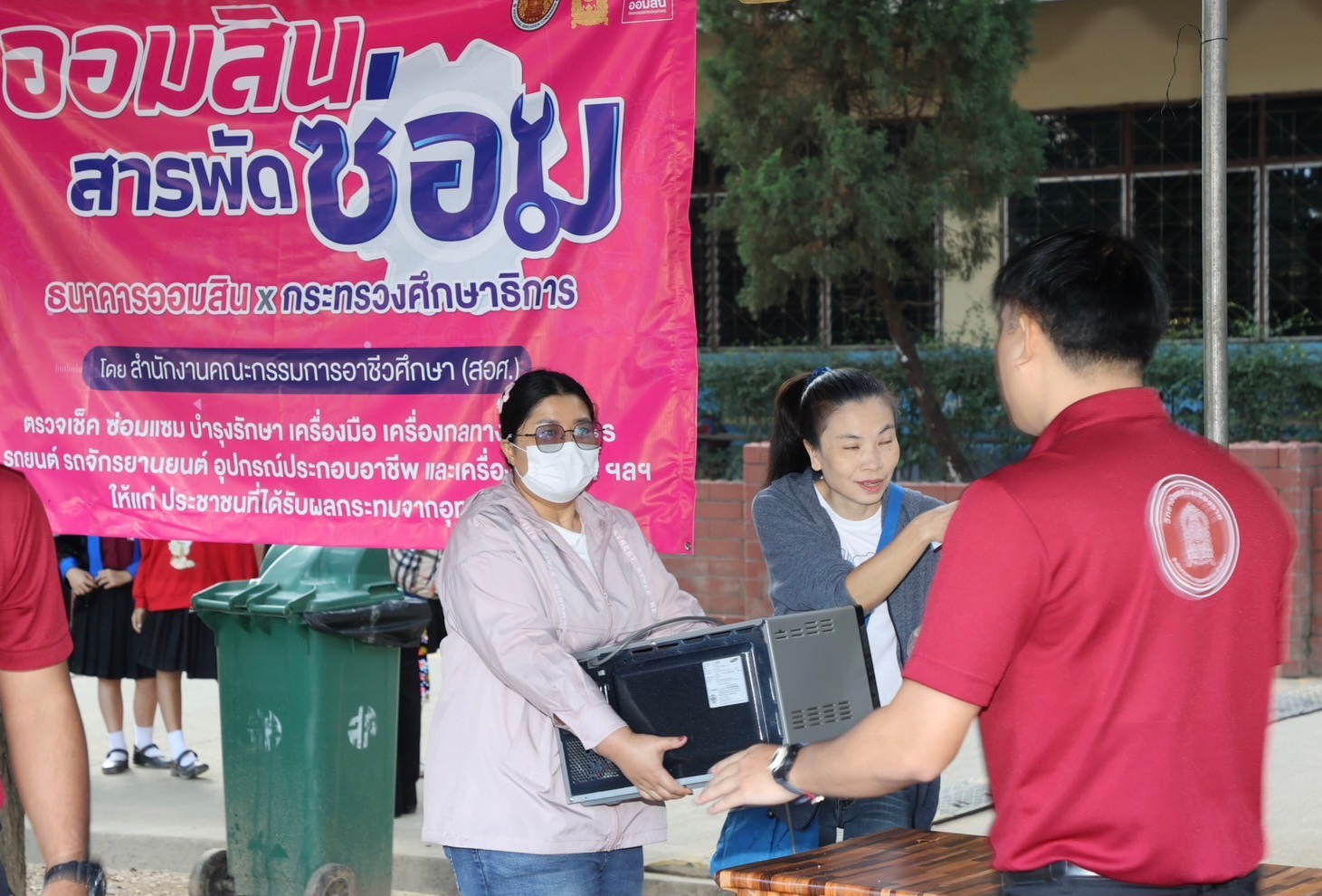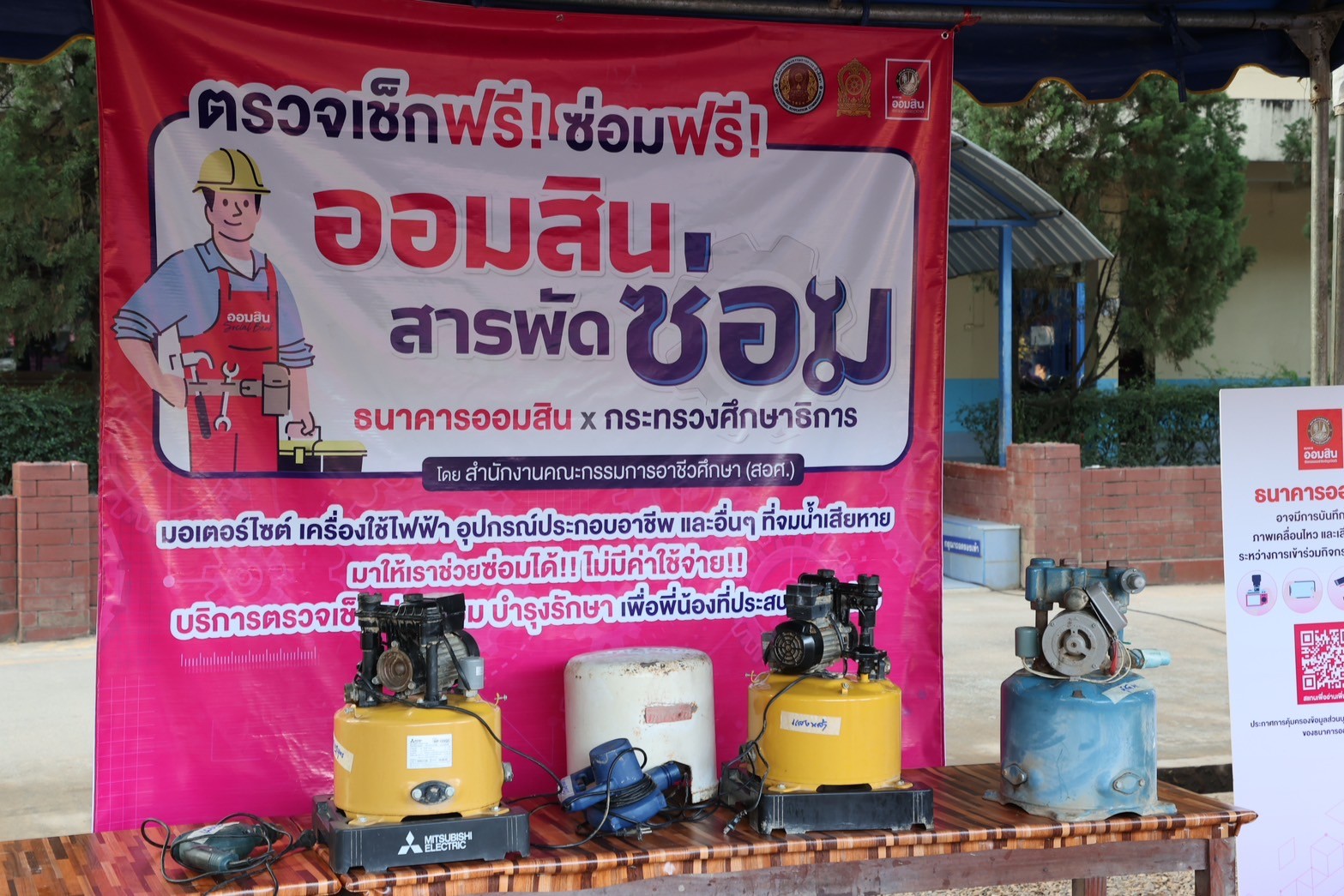 โดยความร่วมมือของสำนักงานคณะกรรมการการอาชีวศึกษา กระทรวงศึกษาธิการ ในการระดมบุคลากรสาขาวิชาชีพช่าง ทั้งคณาจารย์ นักศึกษา และผู้ผ่านการอบรมโครงการออมสินอาชีวะสร้างอาชีพสู่ชุมชน ดำเนินการซ่อมแซมเครื่องมือ อุปกรณ์ประกอบอาชีพ เครื่องใช้ไฟฟ้า รถจักรยานยนต์ และอื่น ๆ ที่ได้รับความเสียหาย ให้สามารถกลับไปใช้งานได้ตามปกติ โดยไม่มีค่าใช้จ่าย ซึ่งล่าสุดให้บริการประชาชนรวมงานซ่อมแล้วกว่า 17,000 ชิ้น พร้อมกันนี้ ได้มอบการสนับสนุนต่าง ๆได้แก่ การมอบทุนสนับสนุนโอกาสทางการศึกษาแก่นักเรียนยากจน จำนวน 60 ทุน มอบทุนสนับสนุนแก่โรงเรียนสหศาสตร์ศึกษา ตามโครงการ ปรับ ฟื้น คืนสุข จำนวน 100,000 บาท และการมอบเครื่องคอมพิวเตอร์และอุปกรณ์ในโครงการคอมพิวเตอร์เพื่อสังคม จำนวน 40 ชุด ณ โรงเรียนสหศาสตร์ศึกษา จ.เชียงราย เมื่อวันที่ 1 ธันวาคม 2567