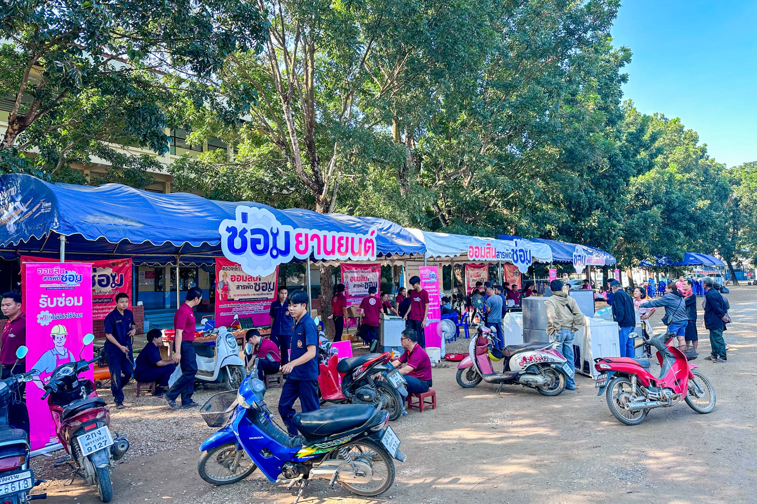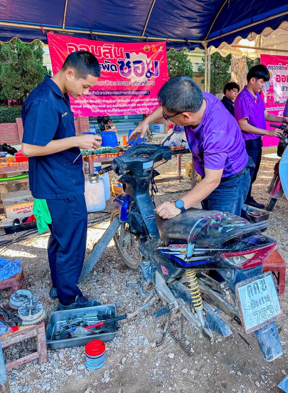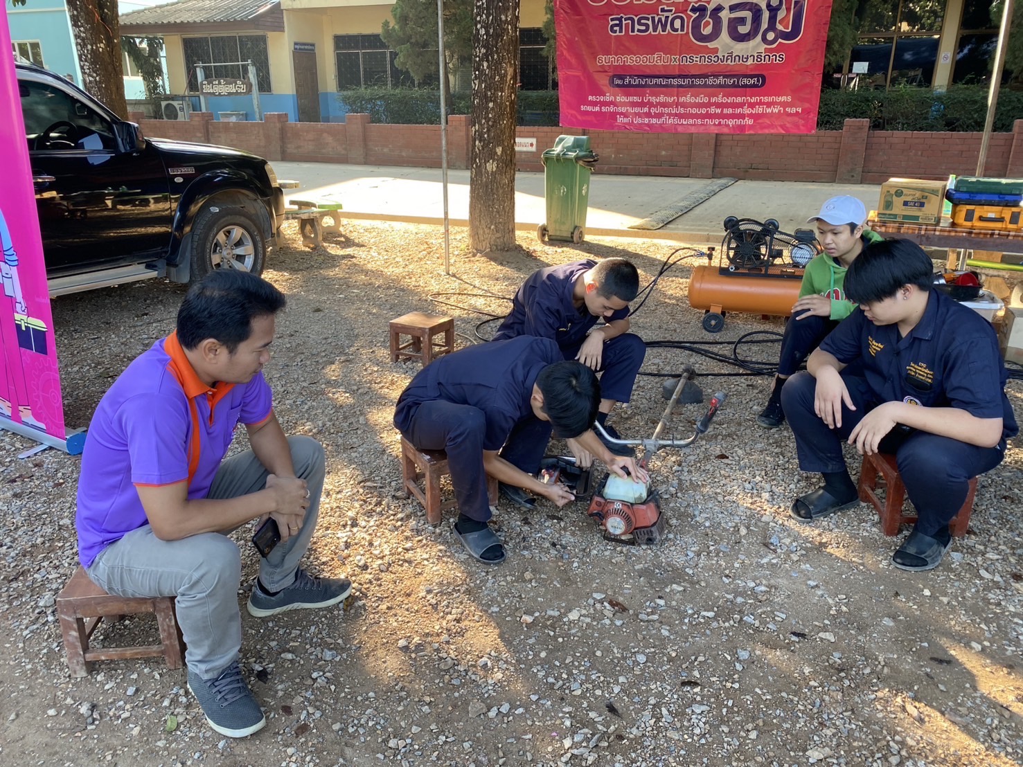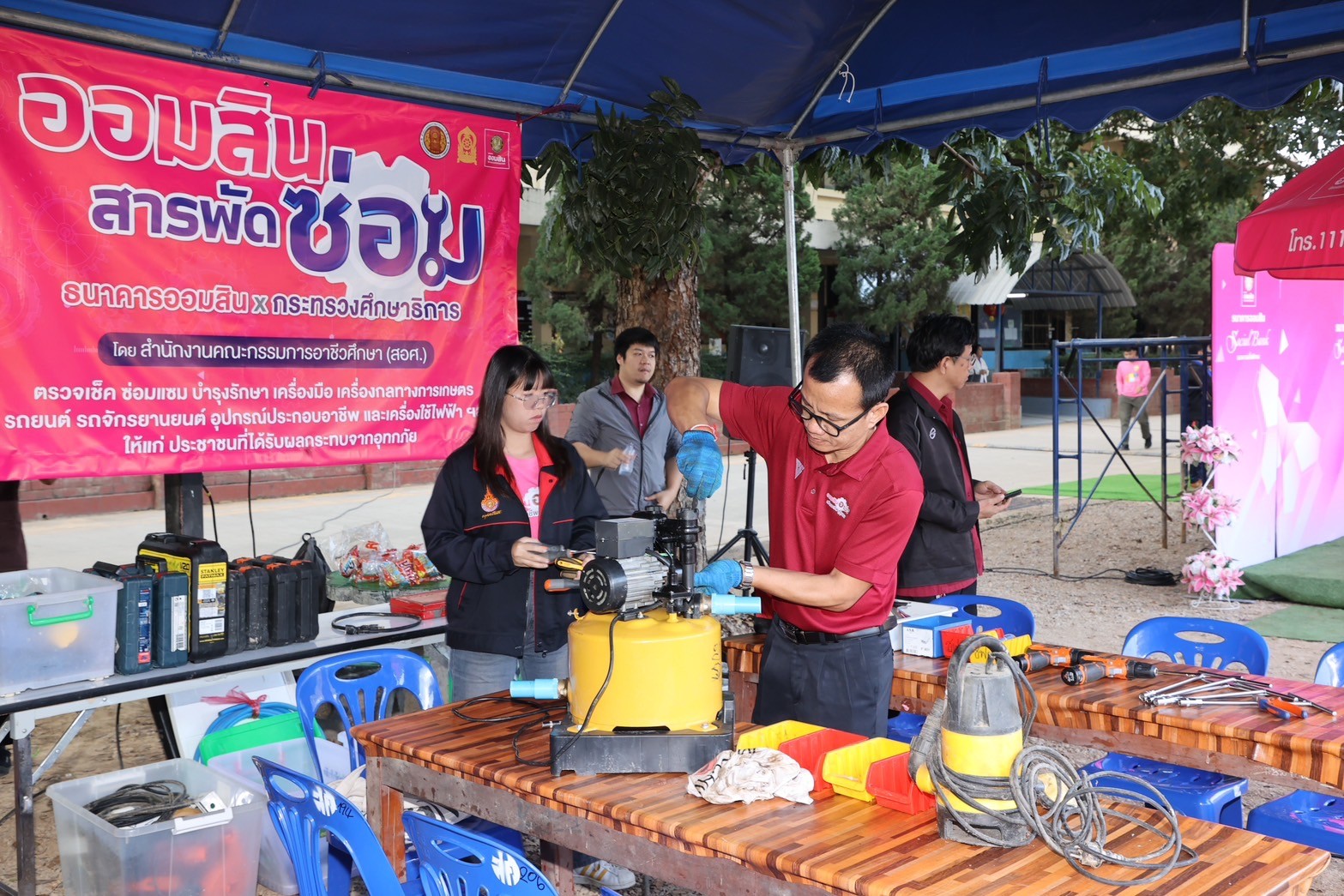 โดยความร่วมมือของสำนักงานคณะกรรมการการอาชีวศึกษา กระทรวงศึกษาธิการ ในการระดมบุคลากรสาขาวิชาชีพช่าง ทั้งคณาจารย์ นักศึกษา และผู้ผ่านการอบรมโครงการออมสินอาชีวะสร้างอาชีพสู่ชุมชน ดำเนินการซ่อมแซมเครื่องมือ อุปกรณ์ประกอบอาชีพ เครื่องใช้ไฟฟ้า รถจักรยานยนต์ และอื่น ๆ ที่ได้รับความเสียหาย ให้สามารถกลับไปใช้งานได้ตามปกติ โดยไม่มีค่าใช้จ่าย ซึ่งล่าสุดให้บริการประชาชนรวมงานซ่อมแล้วกว่า 17,000 ชิ้น พร้อมกันนี้ ได้มอบการสนับสนุนต่าง ๆได้แก่ การมอบทุนสนับสนุนโอกาสทางการศึกษาแก่นักเรียนยากจน จำนวน 60 ทุน มอบทุนสนับสนุนแก่โรงเรียนสหศาสตร์ศึกษา ตามโครงการ ปรับ ฟื้น คืนสุข จำนวน 100,000 บาท และการมอบเครื่องคอมพิวเตอร์และอุปกรณ์ในโครงการคอมพิวเตอร์เพื่อสังคม จำนวน 40 ชุด ณ โรงเรียนสหศาสตร์ศึกษา จ.เชียงราย เมื่อวันที่ 1 ธันวาคม 2567