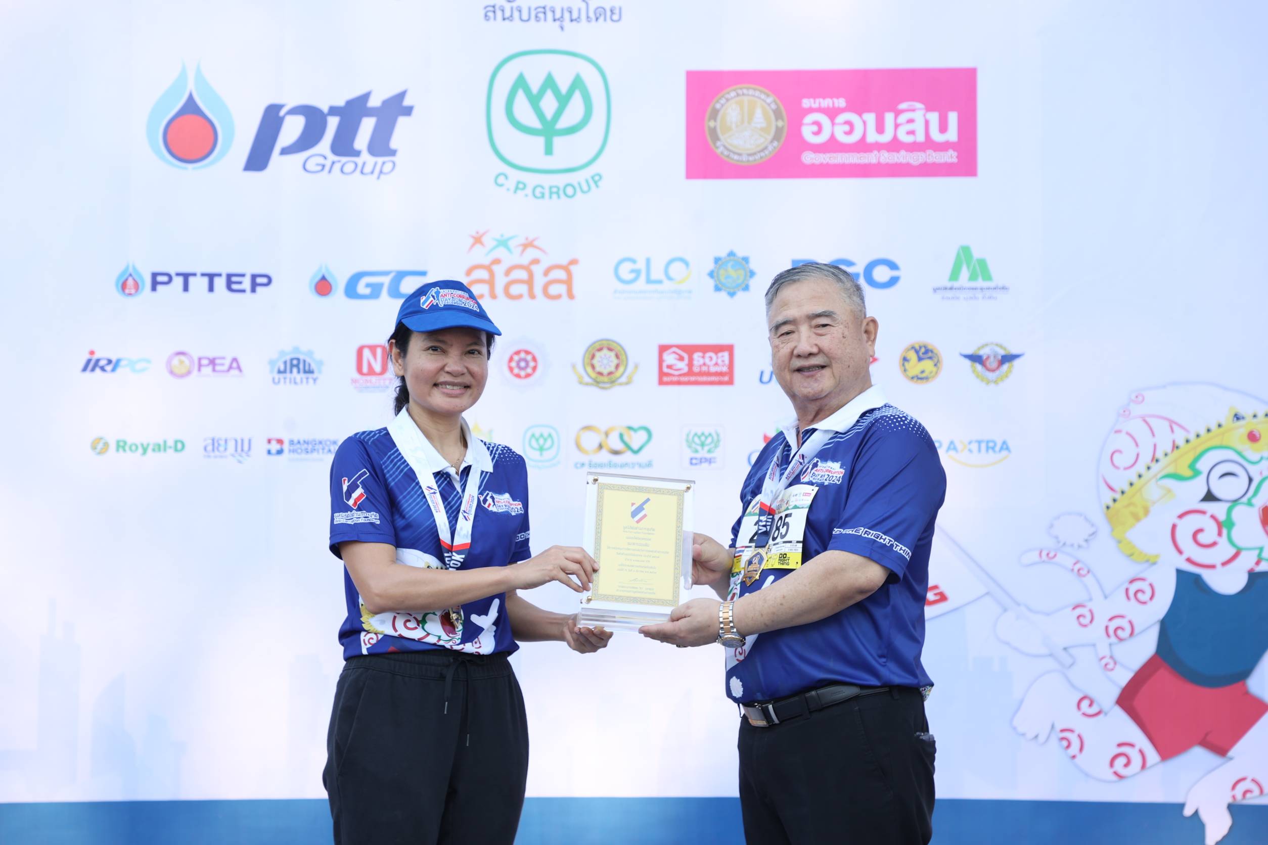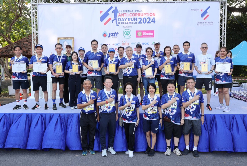 เนื่องในวันต่อต้านคอร์รัปชันสากล ประจำปี 2567 ให้แก่มูลนิธิต่อต้านการทุจริต โดยมี พลเอกธีระเดช ฉัตรเสถียรพงศ์ รองประธานกรรมการมูลนิธิต่อต้านการทุจริต และประธานกรรมการดำเนินงานจัดการแข่งขันฯ เป็นผู้รับมอบ และมีคณะผู้บริหาร พนักงาน ลูกจ้าง และชมรมกรีฑาธนาคารออมสิน ร่วมด้วย ณ สวนหลวง ร.9 และบึงหนองบอน เขตประเวศ เมื่อวันที่ 8 ธันวาคม 2567