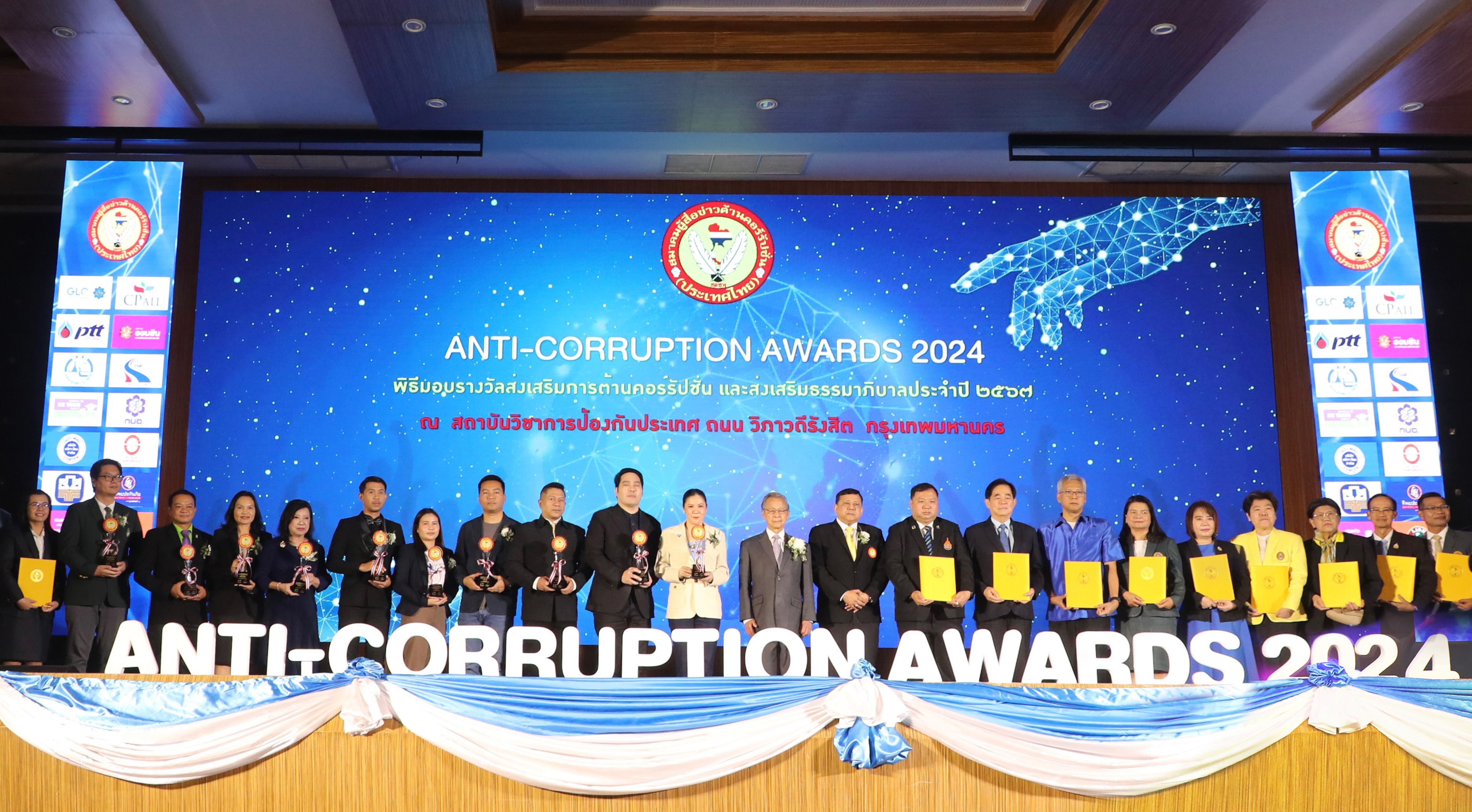 นางสมพรรษ เพ็งจันทร์ ผู้ช่วยผู้อำนวยการธนาคารออมสิน สายงานกำกับและควบคุม กลุ่มกำกับและบริหารความเสี่ยง เป็นผู้แทนนายวิทัย รัตนากร ผู้อำนวยการธนาคารออมสิน รับมอบโล่เชิดชูเกียรติรางวัล ANTI-CORRUPTION AWARDS 2024 ส่งเสริมธรรมาภิบาล ประจำปี 2567 ประเภทบุคคล จาก นายชวน หลีกภัย อดีตนายกรัฐมนตรี ประธานในงานมอบรางวัล ANTI-CORRUPTION AWARDS 2024