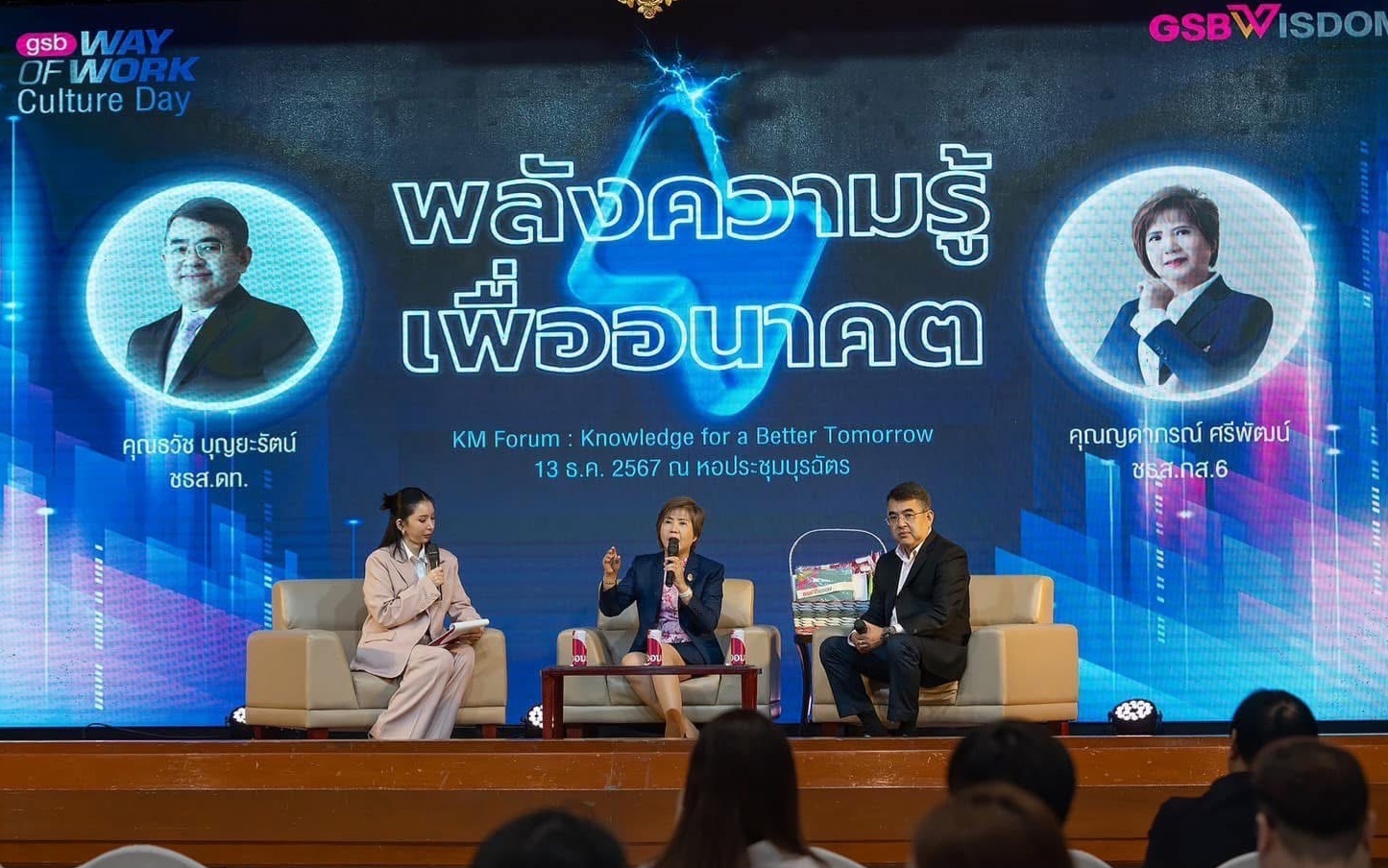 รองศาสตราจารย์ ดร.ธนวรรธน์ พลวิชัย กรรมการธนาคารออมสิน และประธานกรรมการกำกับดูแลกิจการที่ดีและความยั่งยืน เป็นประธานเปิดงาน Culture Day : GSB Way of Work เส้นทางสู่...วัฒนธรรมการทำงานแบบยั่งยืน พร้อมร่วมกับกรรมการธนาคารออมสิน และนายวิทัย รัตนากร ผู้อำนวยการธนาคารออมสิน เสวนาในหัวข้อ with Governance : เปลี่ยน GRC Culture ให้เป็นพลังแห่งความยั่งยืน