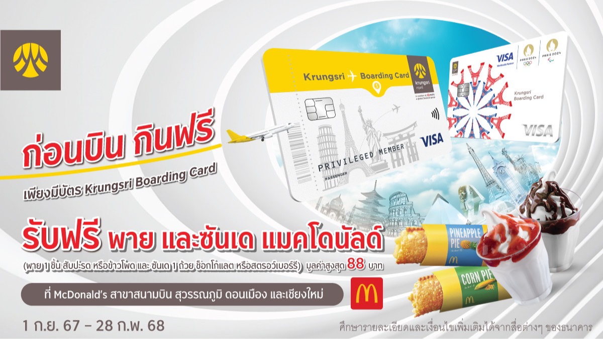 ก่อนบิน กินฟรี กับบัตร Krungsri Boarding Card ที่ McDonald's Airport