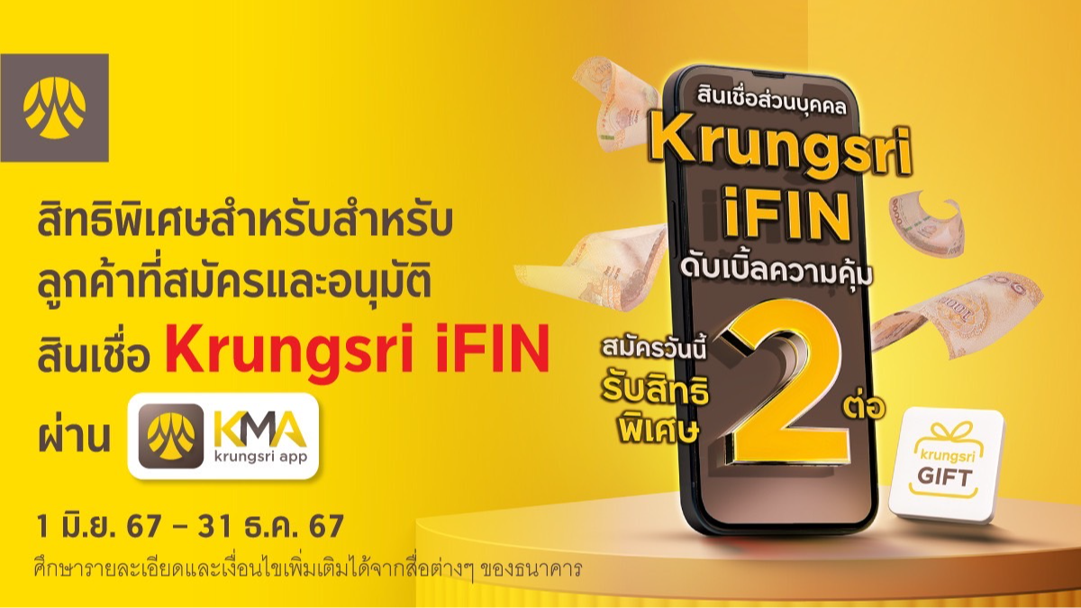 สมัครสินเชื่อหมุนเวียนส่วนบุคคล Krungsri iFIN วันนี้! รับความฟิน 2 ต่อ