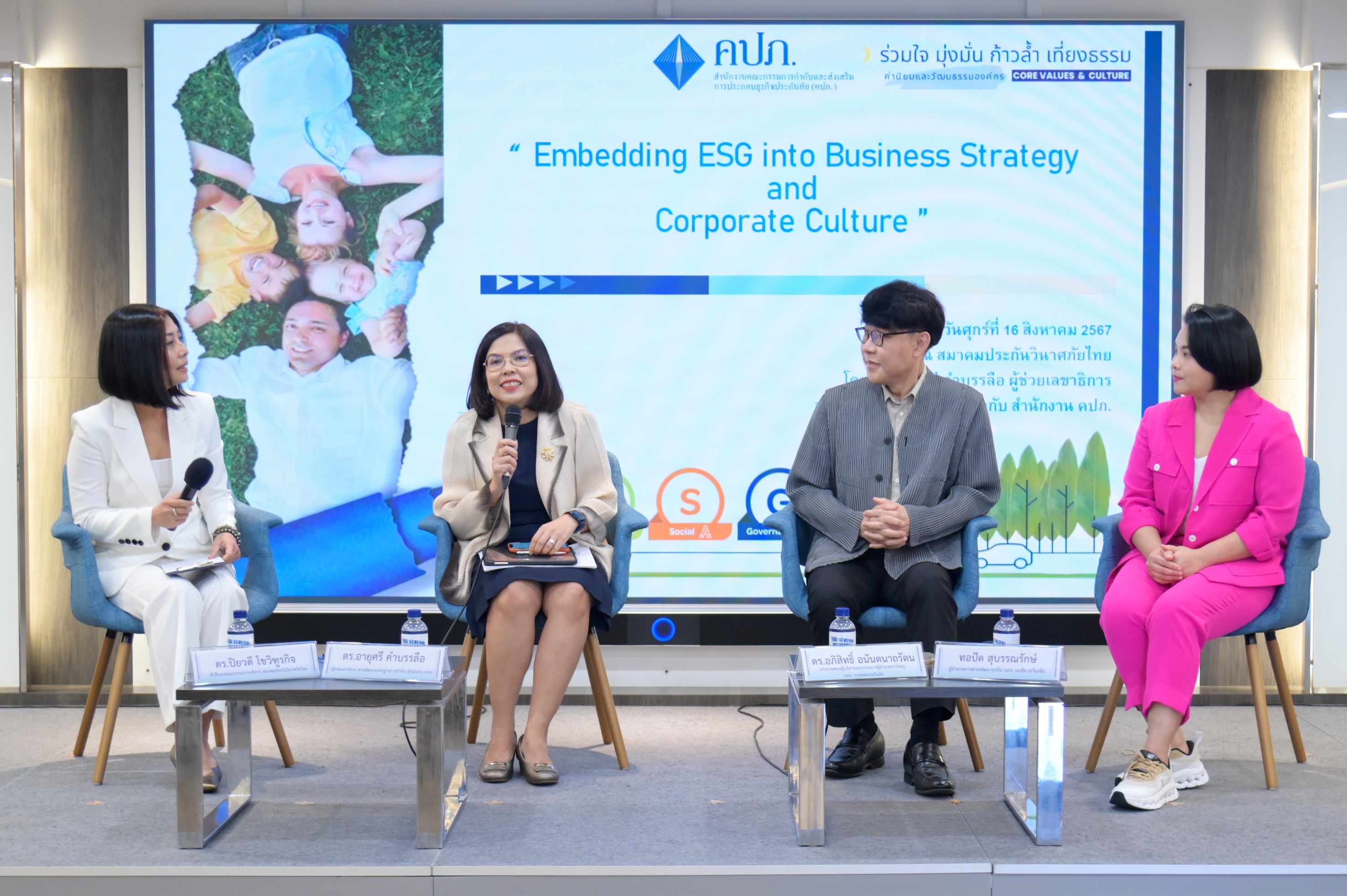 ด้วยเหตุนี้ สมาคมประกันวินาศภัยไทย โดยคณะพัฒนาธุรกิจและวิชาการประกันภัย และชมรมบริหารและจัดการความเสี่ยงของบริษัทประกันภัย จึงได้มีการศึกษาและผลักดันให้ธุรกิจประกันภัย มุ่งเน้นพัฒนาแนวทางในการดําเนินการด้าน ESG โดยการให้บริษัทประกันวินาศภัยจัดทำคู่มือแนวปฏิบัติในเรื่องดังกล่าว เพื่อให้มีการบริหารจัดการความเสี่ยงแบบองค์รวม มีการกำกับดูแลกิจการที่ดี คำนึงถึงผู้มีส่วนได้เสียอย่างรอบด้านในระยะยาว และเพื่อตอกย้ำการดำเนินงานที่ตระหนักถึงความสำคัญด้านสิ่งแวดล้อม สังคม และธรรมาภิบาล พร้อมทั้งได้มีการจัดสัมมนาเรื่อง “Driving Sustainable Business Growth through ESG Practices” ขึ้นเมื่อวันศุกร์ที่ 16 สิงหาคม 2567 ในรูปแบบไฮบริดทั้ง Online และ Onsite ซึ่งมีผู้เข้าร่วมสัมมนาจำนวนกว่า 400 ท่าน เพื่อส่งเสริมแนวทางการปฏิบัติด้าน ESG ที่เป็นรูปธรรม โดยการผนวกเข้ากับกลยุทธ์ทางธุรกิจและวัฒนธรรมองค์กร เพื่อยกระดับมาตรฐานด้าน ESG ให้เป็นที่ยอมรับในระดับประเทศและระดับสากล โดยได้รับเกียรติจากวิทยากรผู้ทรงคุณวุฒิเปี่ยมด้วยความรู้และประสบการณ์ในด้าน ESG จากหลากหลายธุรกิจ มาร่วมแบ่งปันความรู้และประสบการณ์ในการบริหารจัดการ การกำหนดนโยบาย รวมถึงการผนวกเรื่องความยั่งยืนและ ESG เข้ามาพัฒนาองค์กร อันจะนำไปสู่การเติบโตของธุรกิจประกันภัยอย่างยั่งยืน ประกอบด้วย ดร.เสรี นนทสูติ รองกรรมการผู้จัดการอาวุโส มูลนิธิสถาบันวิจัยและพัฒนาองค์กรภาครัฐและกรรมการสหประชาชาติว่าด้วยสิทธิทางเศรษฐกิจ สังคม และวัฒนธรรมผู้ทรงคุณวุฒิด้านกฎหมาย สำนักงาน คปภ. ที่ให้เกียรติมาเป็น Keynote Speech บรรยายเรื่อง “Driving Growth and Innovation through Sustainable Business Practices” พร้อมด้วยวิทยากรจากสำนักงาน คปภ. ภาคธุรกิจประกันภัย และภาคธุรกิจอื่น ๆ ร่วมในการเสวนาหัวข้อ “Embedding ESG into Business Strategy and Corporate Culture” ประกอบด้วย