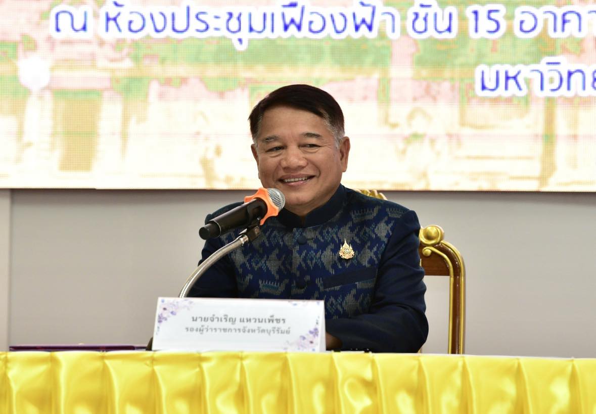 นายจำเริญ แหวนเพ็ชร รองผู้ว่าราชการจังหวัดบุรีรัมย์ กล่าวว่า จังหวัดบุรีรัมย์มีความยินดีและเป็นเกียรติอย่างยิ่งที่ได้รับเลือกให้เป็นเจ้าภาพจัดงานมหกรรมงานวิจัยส่วนภูมิภาค ครั้งที่ 13 ประจำปี 2568 ร่วมกับมหาวิทยาลัยราชภัฏบุรีรัมย์และสำนักงานการวิจัยแห่งชาติ จังหวัดบุรีรัมย์พร้อมต้อนรับนักวิชาการ นักวิจัย และเครือข่ายภาควิชาการจากทุกจังหวัดในภาคตะวันออกเฉียงเหนือ ด้วยศักยภาพที่โดดเด่นทั้งด้านสถานที่จัดงาน ที่พัก การคมนาคม และสิ่งอำนวยความสะดวกครบครัน โดยเฉพาะอย่างยิ่งมหาวิทยาลัยราชภัฏบุรีรัมย์ที่มีความพร้อมด้านสถานที่และบุคลากรในการจัดงานระดับภูมิภาค นอกจากนี้ จังหวัดบุรีรัมย์ยังมีแหล่งท่องเที่ยวสำคัญทั้งด้านประวัติศาสตร์ วัฒนธรรม และการกีฬา อาทิ ปราสาทพนมรุ้ง ปราสาทเมืองต่ำ สนามช้าง อินเตอร์เนชั่นแนล เซอร์กิต รวมถึงผลิตภัณฑ์ชุมชนที่มีชื่อเสียง ซึ่งผู้เข้าร่วมงานสามารถเยี่ยมชมและสัมผัสได้ระหว่างการเข้าร่วมงานการจัดงานครั้งนี้จะเป็นโอกาสสำคัญในการแลกเปลี่ยนองค์ความรู้ด้านการวิจัย นวัตกรรม และเทคโนโลยี ระหว่างนักวิชาการในภูมิภาค อันจะนำไปสู่การพัฒนาเศรษฐกิจ สังคม การศึกษา และสิ่งแวดล้อมของภาคตะวันออกเฉียงเหนืออย่างยั่งยืน