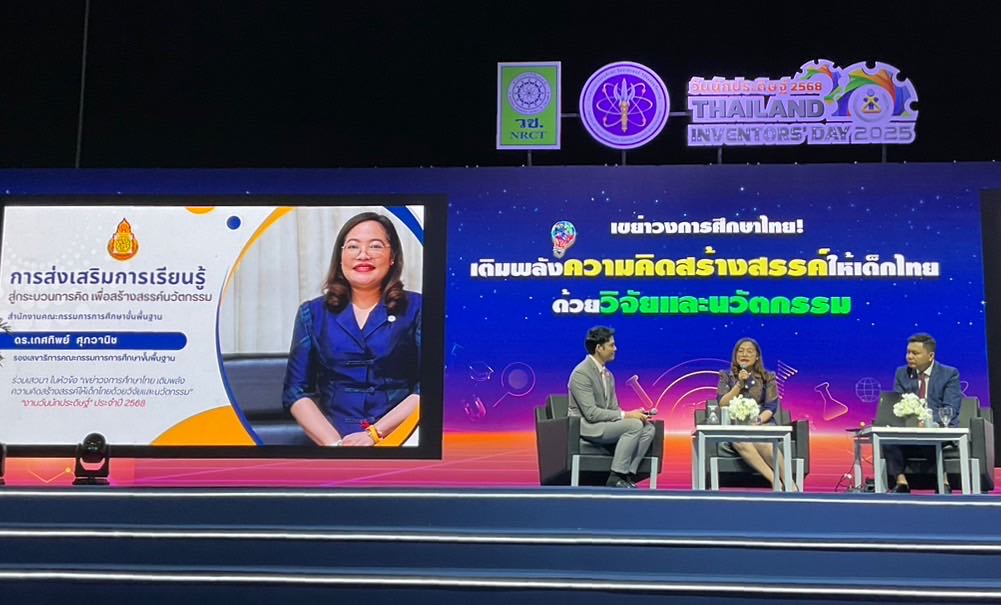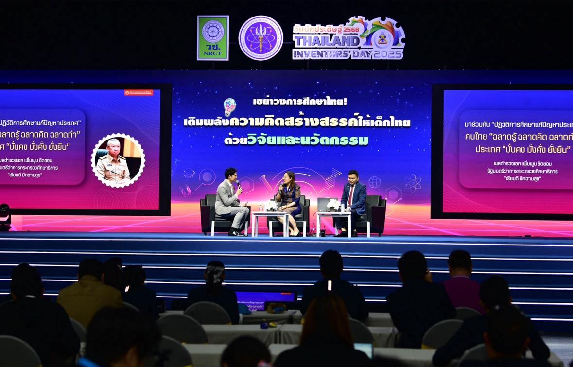 วันที่ 4 กุมภาพันธ์ 2568 สำนักงานการวิจัยแห่งชาติ (วช.) กระทรวงการอุดมศึกษา วิทยาศาสตร์ วิจัยและนวัตกรรม ร่วมกับ สำนักงานคณะกรรมการศึกษาขั้นพื้นฐาน และสำนักงานคณะกรรมการการอาชีวศึกษา กระทรวงศึกษาธิการ จัดการเสวนาในหัวข้อเรื่อง “เขย่าวงการศึกษาไทย! เติมพลังความคิดสร้างสรรค์ให้เด็กไทยด้วยวิจัยและนวัตกรรม” โดย ดร.วิภารัตน์ ดีอ่อง ผู้อำนวยการสำนักงานการวิจัยแห่งชาติ ให้เกียรติบรรยายพิเศษในหัวข้อ “กลไกส่งเสริมเยาวชนไทย ด้วยสิ่งประดิษฐ์และนวัตกรรม” ณ เวทีกิจกรรมกลาง Event Hall 103 ศูนย์นิทรรศการและการประชุมไบเทค บางนา