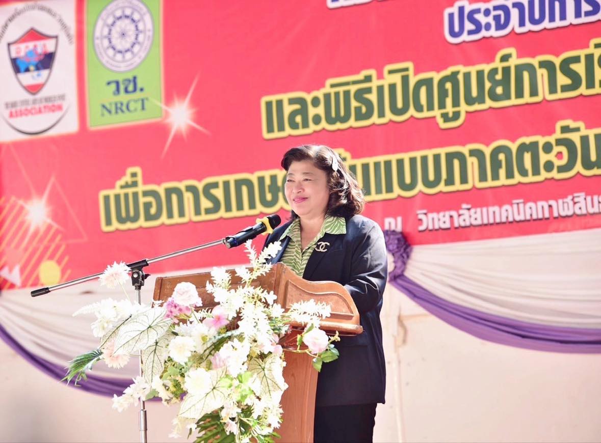 ดร.วิภารัตน์ ดีอ่อง ผู้อำนวยการสำนักงานการวิจัยแห่งชาติ กล่าวว่า วช. ภายใต้กระทรวง อว.มีนโยบายมุ่งเน้นการส่งเสริมและสนับสนุนการพัฒนาด้านการศึกษาและวิทยาศาสตร์เทคโนโลยีเพื่อให้เกิดการสร้างนวัตกรรมและสิ่งประดิษฐ์ใหม่ ๆ ที่เป็นประโยชน์ต่อการพัฒนาประเทศ โดยเฉพาะการนำเทคโนโลยีโดรนมาประยุกต์ใช้ในหลากหลายด้าน ซึ่งในครั้งนี้ วช.สนับสนุนให้สมาคมกีฬาเครื่องบินจำลองและวิทยุบังคับ ได้นำเทคโนโลยีโดรนเพื่อการเกษตรช่วยในการตรวจสอบสภาพแปลงเกษตร ลดเวลาในการทำงาน และเพิ่มผลผลิตให้แก่เกษตรกรได้อย่างมีประสิทธิภาพ การเปิดศูนย์การเรียนรู้ในครั้งนี้ เป็นการส่งเสริมการใช้เทคโนโลยีใหม่ในการเกษตร พร้อมทั้งการสร้างเครือข่ายความร่วมมือระหว่างหน่วยงานต่าง ๆ ทั้งภาครัฐและเอกชน ในการแลกเปลี่ยนความรู้และการฝึกอบเกษตรกรเพื่อเสริมสร้างทักษะในการใช้งานโดรนได้อย่างถูกต้องและปลอดภัยในการนำนวัตกรรมที่เกิดจากการวิจัยไปใช้ประโยชน์เพื่อเกิดโอกาสให้เกษตรกรได้เข้าถึงเทคโนโลยีทันสมัย