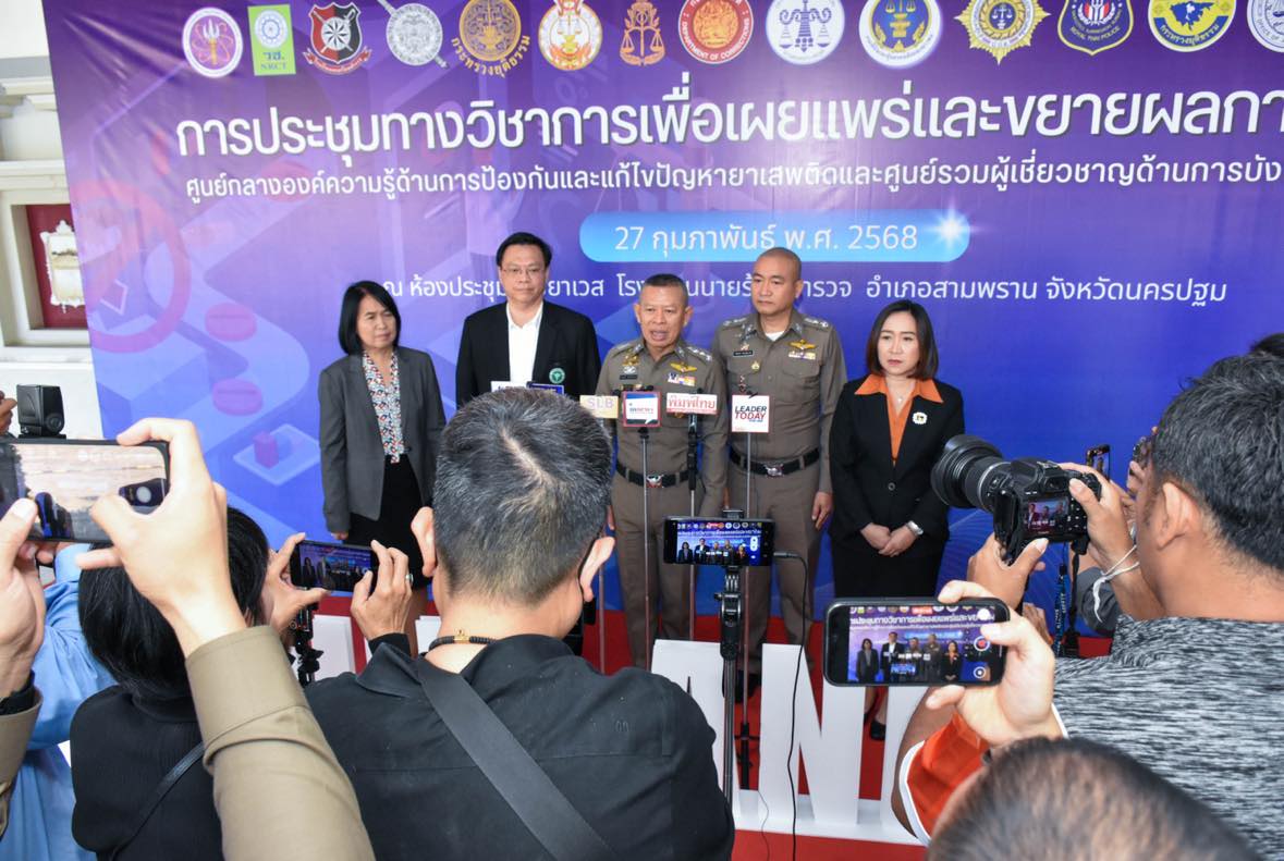 วันที่ 27 กุมภาพันธ์ 2568 สำนักงานการวิจัยแห่งชาติ (วช.) กระทรวงการอุดมศึกษา วิทยาศาสตร์ วิจัยและนวัตกรรม เข้าร่วมการประชุมทางวิชาการเพื่อเผยแพร่และขยายผลการดำเนินงาน “ศูนย์กลางองค์ความรู้ด้านการป้องกันและแก้ไขปัญหายาเสพติดและศูนย์รวมผู้เชี่ยวชาญด้านการบังคับใช้กฎหมายยาเสพติด” โดยได้รับเกียรติจาก พลตำรวจโท ธนายุตม์ วุฒิจรัสธำรงค์ ผู้ช่วยผู้บัญชาการตำรวจแห่งชาติ เป็นประธานกล่าวเปิดงาน พร้อมปาฐกถาพิเศษในหัวข้อ “ปราบปราม ป้องกัน ฟื้นฟู : ยุทธศาสตร์ตำรวจไทยเพื่อแก้ปัญหายาเสพติดอย่างยั่งยืน เพื่อสังคมปลอดยาเสพติด” ในโอกาสนี้ ดร.วิภารัตน์ ดีอ่อง ผู้อำนวยการสำนักงานการวิจัยแห่งชาติ ได้มอบหมายให้ นางสาวศิรินทร์พร เดียวตระกูล ผู้เชี่ยวชาญด้านระบบวิจัย สำนักงานการวิจัยแห่งชาติ เป็นผู้แทนเข้าร่วมการประชุมและปาฐกถาพิเศษในหัวข้อ “สำนักงานการวิจัยแห่งชาติ : พลังขับเคลื่อนงานวิจัยสู่แนวปฏิบัติในการป้องกันและแก้ไขปัญหายาเสพติด” และการประชุมครั้งนี้ได้รับเกียรติจาก ศาสตราจารย์ พลตำรวจตรี ดร.ชัชนันท์ ลีระเติมพงษ์ รองผู้บัญชาการโรงเรียนนายร้อยตำรวจ และผู้บริหารศูนย์ DLET-Hub กล่าวต้อนรับผู้เข้าร่วมประชุม พร้อมด้วย ศาสตราจารย์ พลตำรวจตรีหญิง ดร.พัชรา สินลอยมา หัวหน้าศูนย์ PSDP-Hub ให้การต้อนรับ รวมทั้งได้รับเกียรติจากผู้ทรงคุณวุฒิและผู้บริหารระดับสูงจากหลากหลายหน่วยงานเข้าร่วมเป็นจำนวนมาก ณ โรงเรียนนายร้อยตำรวจ จังหวัดนครปฐม