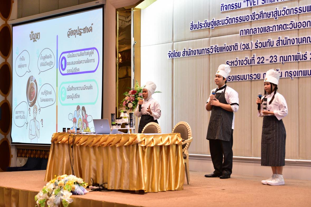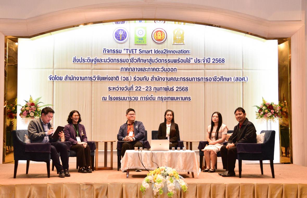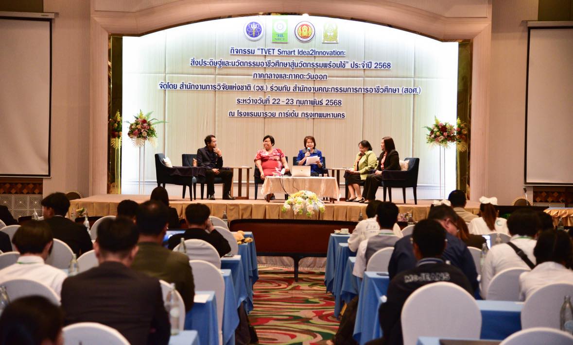 วันที่ 23 กุมภาพันธ์ 2568 สำนักงานการวิจัยแห่งชาติ (วช.) กระทรวงการอุดมศึกษา วิทยาศาสตร์ วิจัยและนวัตกรรม ร่วมกับ สำนักงานคณะกรรมการการอาชีวศึกษา จัดกิจกรรม “TVET Smart Idea2Innovation : สิ่งประดิษฐ์และนวัตกรรมและนวัตกรรมอาชีวศึกษาสู่นวัตกรรมพร้อมใช้” ครั้งที่ 1 (ภาคกลางและภาคตะวันออก) โดย ดร.วิภารัตน์ ดีอ่อง ผู้อำนวยการสำนักงานการวิจัยแห่งชาติ ให้เกียรติเป็นประธานในพิธีปิด พร้อมมอบรางวัลกิจกรรมติดดาว และมอบเกียรติบัตรให้แก่ผู้ผ่านการฝึกอบรม ณ โรงแรมมารวยการ์เด้น กรุงเทพมหานคร