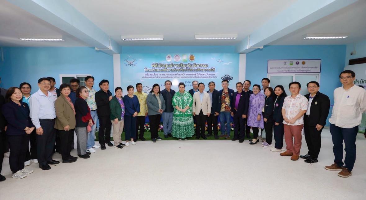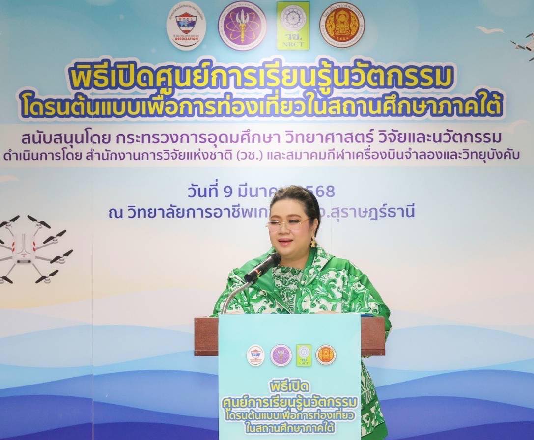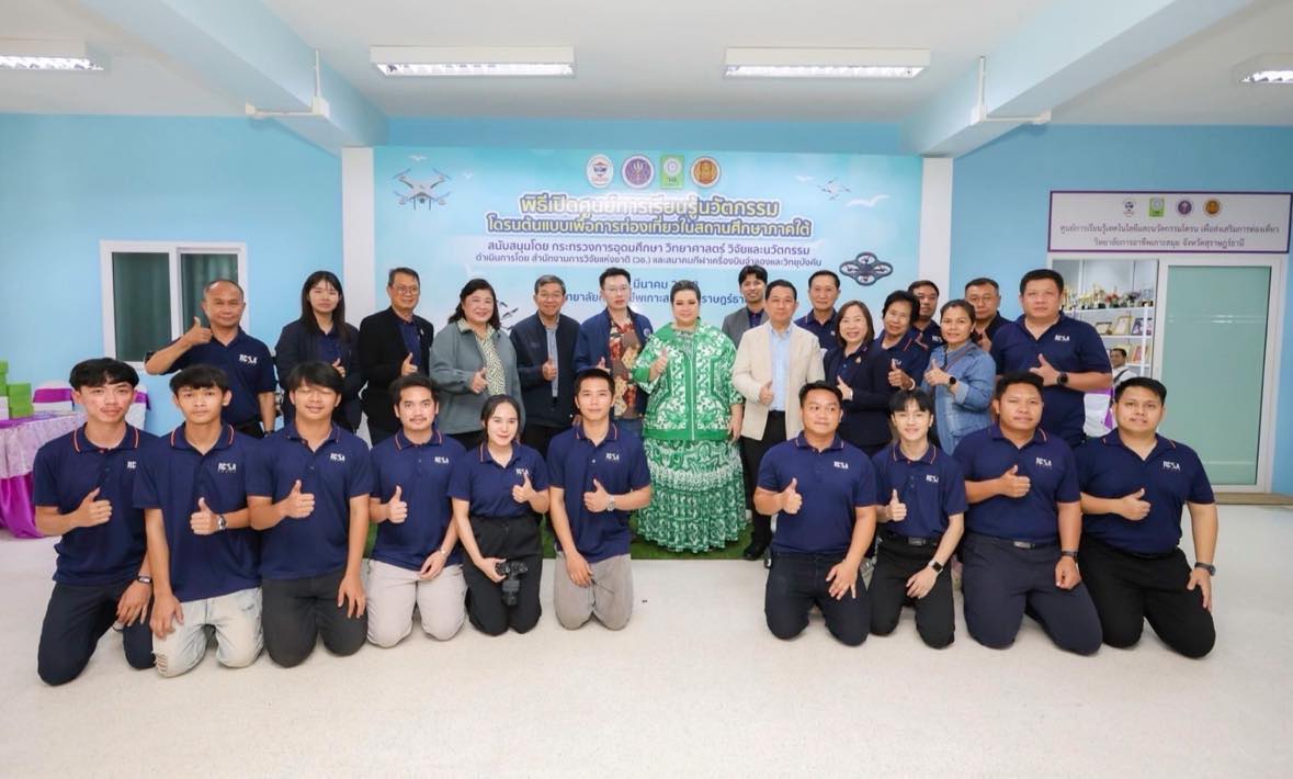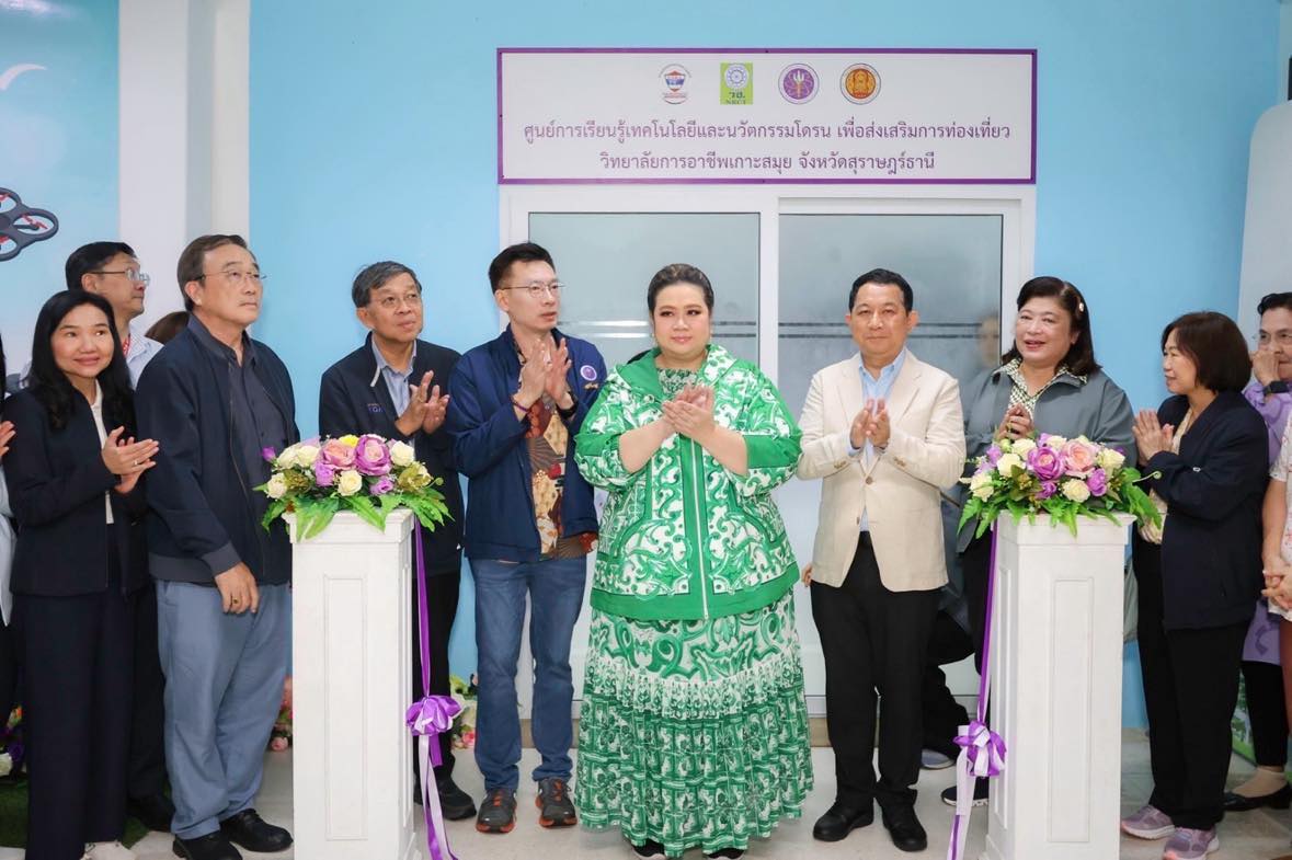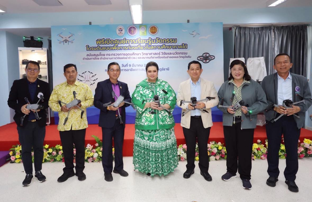 วันที่ 9 มีนาคม 2568 กระทรวงการอุดมศึกษา วิทยาศาสตร์ วิจัยและนวัตกรรม โดย สำนักงานการวิจัยแห่งชาติ (วช.) ร่วมกับสมาคมกีฬาเครื่องบินจำลองและวิทยุบังคับ เปิดศูนย์การเรียนรู้นวัตกรรมโดรนต้นแบบเพื่อการท่องเที่ยวในสถานศึกษาภาคใต้ ณ วิทยาลัยการอาชีพเกาะสมุย จ.สุรษฏร์ธานี โดยได้รับเกียรติจาก นางสาวศุภมาส อิศรภักดี รัฐมนตรีว่าการกระทรวงการอุดมศึกษา วิทยาศาสตร์ วิจัยและนวัตกรรม เป็นประธานในพิธีเปิด โดย ศ.ดร.ศุภชัย ปทุมนากุล ปลัดกระทรวง อว. และผู้บริหารระดับสูงของ อว.เข้าร่วมกิจกรรม พร้อมนี้ ดร.วิภารัตน์ ดีอ่อง ผู้อำนวยการสำนักงานการวิจัยแห่งชาติ กล่าวรายงานการจัดตั้งศูนย์การเรียนรู้, นายอมร ชุ่มช่วย นายอำเภอเกาะสมุย กล่าวให้การต้อนรับ และมี นายสมโชค มีขวด ผู้อำนวยการวิทยาลัยการอาชีพเกาะสมุย นายพิศิษฐ์ มิตรเกื้อกูล นายกสมาคมกีฬาเครื่องบินจำลองและวิทยุบังคับ กล่าวถึงประโยชน์จากการจัดตั้งศูนย์ดังกล่าวในพื้นที่เกาะสมุย ณ วิทยาลัยการอาชีพเกาะสมุย ต.ตลิ่งงาม อ.เกาะสมุย จ.สุราษฎร์ธานี