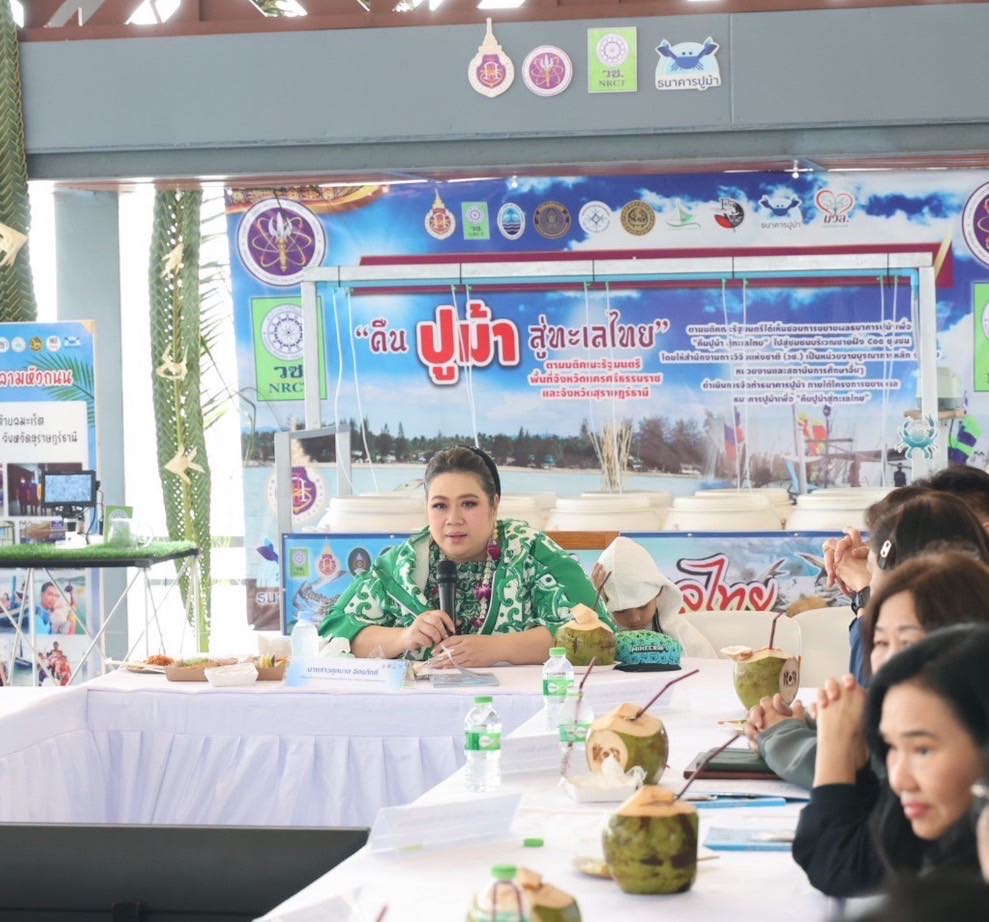 ดร.วิภารัตน์ ดีอ่อง ผู้อำนวยการสำนักงานการวิจัยแห่งชาติ กล่าวว่า โครงการขยายผลธนาคารปูม้าเป็นตัวอย่างสำคัญในการนำองค์ความรู้จากการวิจัยและนวัตกรรมไปใช้ประโยชน์จริงในพื้นที่ชุมชนชายฝั่ง โดยเฉพาะในจังหวัดสุราษฎร์ธานีและจังหวัดใกล้เคียง ซึ่งได้ดำเนินการขยายธนาคารปูม้าไปแล้วกว่า 565 แห่ง นอกจากนี้ยังมีการจัดตั้งศูนย์การเรียนรู้เพื่อถ่ายทอดความรู้ในการอนุรักษ์และฟื้นฟูทรัพยากรชายฝั่งทะเล รวมถึงการสร้างเครือข่ายความร่วมมือระหว่างภาครัฐ ภาคเอกชน และชุมชนในการส่งเสริมกิจกรรมฟื้นฟูทรัพยากรทางทะเลอย่างยั่งยืน โดยได้รับความร่วมมือจาก 15 หน่วยงาน ได้แก่ กรมประมง, มหาวิทยาลัยวลัยลักษณ์, มหาวิทยาลัยเทคโนโลยีราชมงคลศรีวิชัย, มหาวิทยาลัยทักษิณ, มหาวิทยาลัยสงขลานครินทร์, มหาวิทยาลัยศิลปากร วิทยาเขตสารสนเทศเพชรบุรี, มหาวิทยาลัยเกษตรศาสตร์, มหาวิทยาลัยแม่โจ้-ชุมพร, มหาวิทยาลัยเทคโนโลยีราชมงคลตะวันออก, มหาวิทยาลัยราชภัฏรำไพพรรณี, จุฬาลงกรณ์มหาวิทยาลัย, มหาวิทยาลัยบูรพา วิทยาเขตจันทบุรี, มหาวิทยาลัยราชภัฏภูเก็ต, สมาคมพลังงานทดแทนเพื่อความยั่งยืน และมูลนิธิความร่วมมือทางเศรษฐกิจไทย-แคนาดา การขยายผลโครงการธนาคารปูม้า ช่วยฟื้นฟูทรัพยากรธรรมชาติ และเป็นการสร้างโอกาสในการพัฒนาศักยภาพการผลิตบริเวณชายฝั่งอย่างยั่งยืน