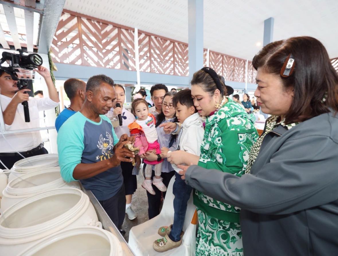 เมื่อวันที่ 9 มีนาคม 2568 นางสาวศุภมาส อิศรภักดี รัฐมนตรีว่าการกระทรวงการอุดมศึกษา วิทยาศาสตร์ วิจัยและนวัตกรรม นำคณะผู้บริหารระดับสูง อว. ประกอบด้วย ศ.ดร.ศุภชัย ปทุมนากุล ปลัดกระทรวง อว., ศ.นพ.สิริฤกษ์ ทรงศิวิไล ประธานกรรมการส่งเสริมวิทยาศาสตร์ วิจัยและนวัตกรรม และผู้บริหารระดับสูงของ อว. จากหน่วยงานราชการ รัฐวิสาหกิจ องค์การมหาชนและมหาวิทยาลัย เข้าร่วมตรวจเยี่ยมโครงการ “ธนาคารปูม้า: เครื่องมือการบริหารจัดการทรัพยากรชายฝั่งเพื่อใช้ประโยชน์อย่างยั่งยืน” ภายใต้โครงการขยายผลธนาคารปูม้าเพื่อ “คืนปูม้าสู่ทะเลไทย” ซึ่งมหาวิทยาลัยวลัยลักษณ์ได้รับการสนับสนุนการวิจัยและนวัตกรรมจาก วช. ในการดำเนินงาน ณ ธนาคารปูม้าชุมชนอิสลามหัวถนน อ.เกาะสมุย จ.สุราษฏร์ธานี