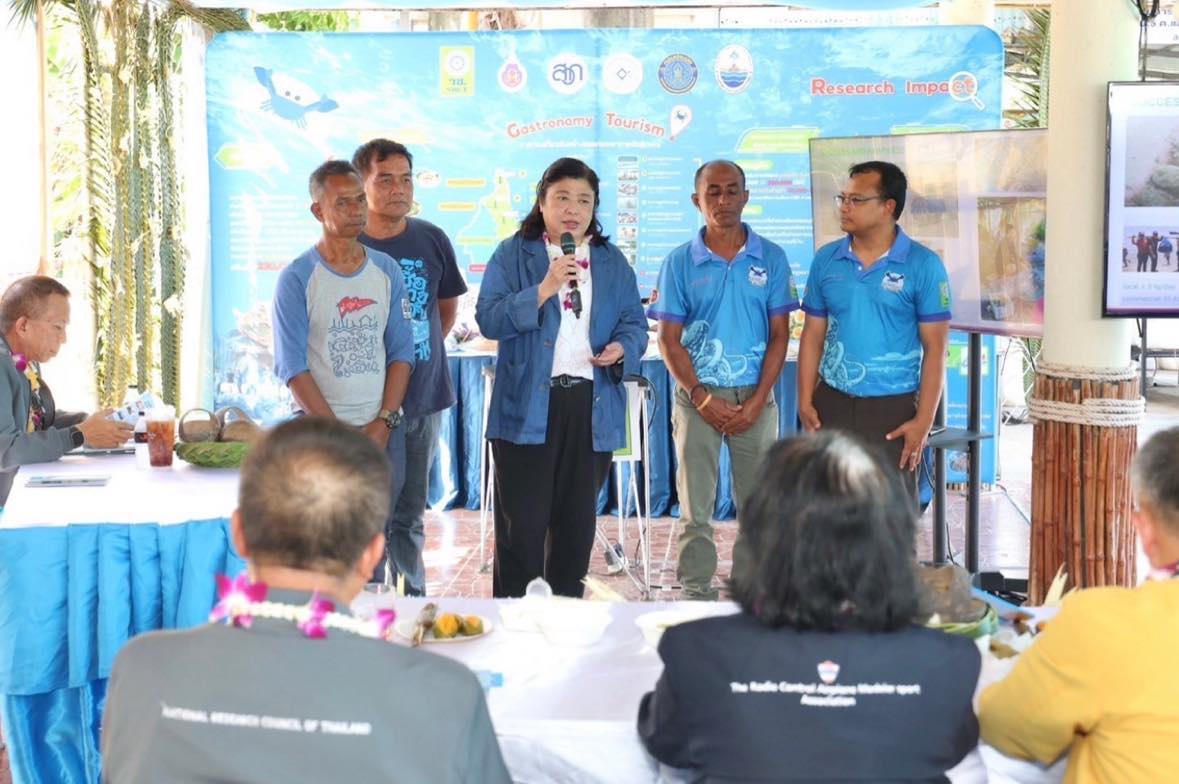 ดร.วิภารัตน์ ดีอ่อง ผู้อำนวยการสำนักงานการวิจัยแห่งชาติ กล่าวถึงความสำคัญของโครงการธนาคารปูม้าซึ่งดำเนินการโดยชุมชนร่วมกับมหาวิทยาลัยวลัยลักษณ์ ในการพัฒนาและส่งเสริมโครงการธนาคารปูม้ามุ่งเน้นการฟื้นฟูทรัพยากรทางทะเล การส่งเสริมการสร้างความร่วมมือระหว่างชุมชนและภาคการวิจัย เพื่อเสริมสร้างความมั่นคงทางอาหารและอาชีพให้กับชุมชนท้องถิ่น วช. มีความยินดีอย่างยิ่งที่จะให้การสนับสนุนโครงการดังกล่าวอย่างต่อเนื่อง และพร้อมที่จะขยายผลการดำเนินงานในด้านต่าง ๆ เพื่อพัฒนาและเสริมสร้างความยั่งยืนให้กับโครงการในอนาคต
