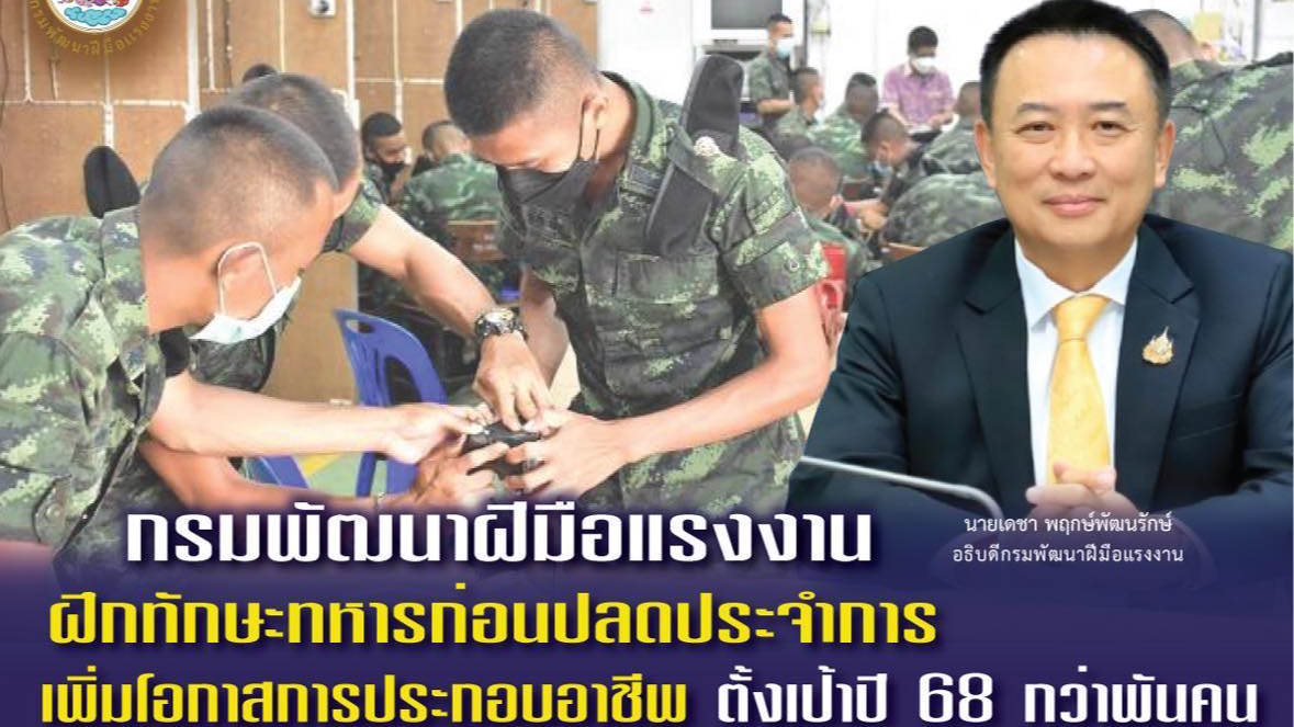 กรมพัฒนาฝีมือแรงงาน ฝึกทักษะทหารก่อนปลดประจำการ เพิ่มโอกาสการประกอบอาชีพ ตั้งเป้าปี 68 กว่าพันคน