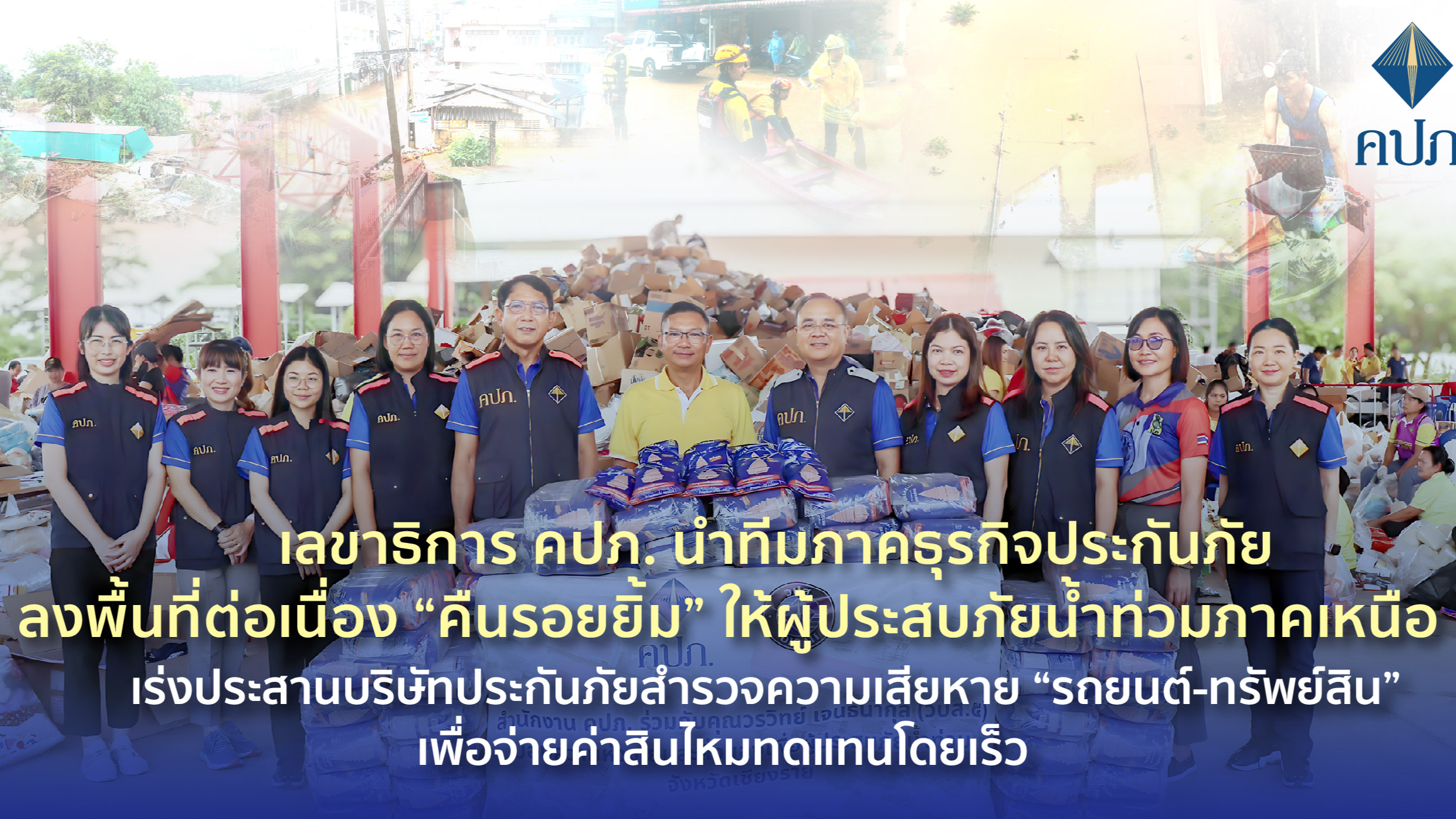 เลขาธิการ คปภ. นำทีมภาคธุรกิจประกันภัย ลงพื้นที่ต่อเนื่อง “คืนรอยยิ้ม” ให้ผู้ประสบภัยน้ำท่วมภาคเหนือ เร่งประสานบริษัทประกันภัยสำรวจความเสียหาย “รถยนต์-ทรัพย์สิน” เพื่อจ่ายค่าสินไหมทดแทนโดยเร็ว
