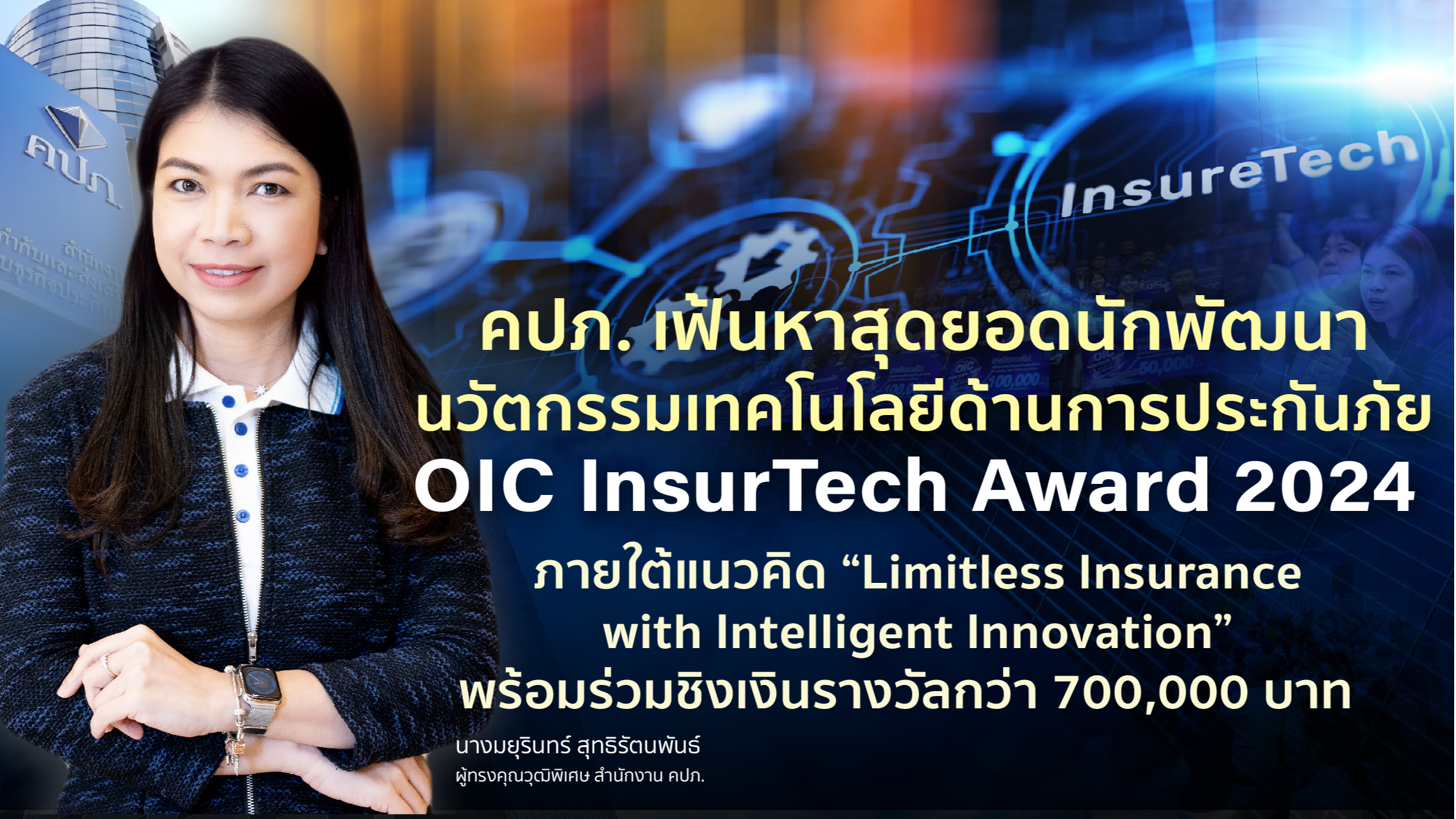 คปภ. เฟ้นหาสุดยอดนักพัฒนานวัตกรรมเทคโนโลยีด้านการประกันภัย OIC InsurTech Award 2024 ภายใต้แนวคิด “Limitless Insurance with Intelligent Innovation” พร้อมร่วมชิงเงินรางวัลกว่า 700,000 บาท