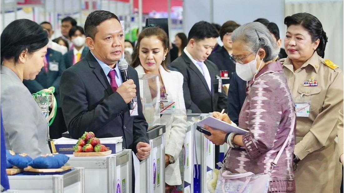 สมเด็จพระกนิษฐาธิราชเจ้า กรมสมเด็จพระเทพรัตนราชสุดาฯ ทอดพระเนตร สตรอว์เบอร์รีพันธุ์พระราชทาน ๘๙ ในงาน "วันนักประดิษฐ์ ๒๕๖๘"