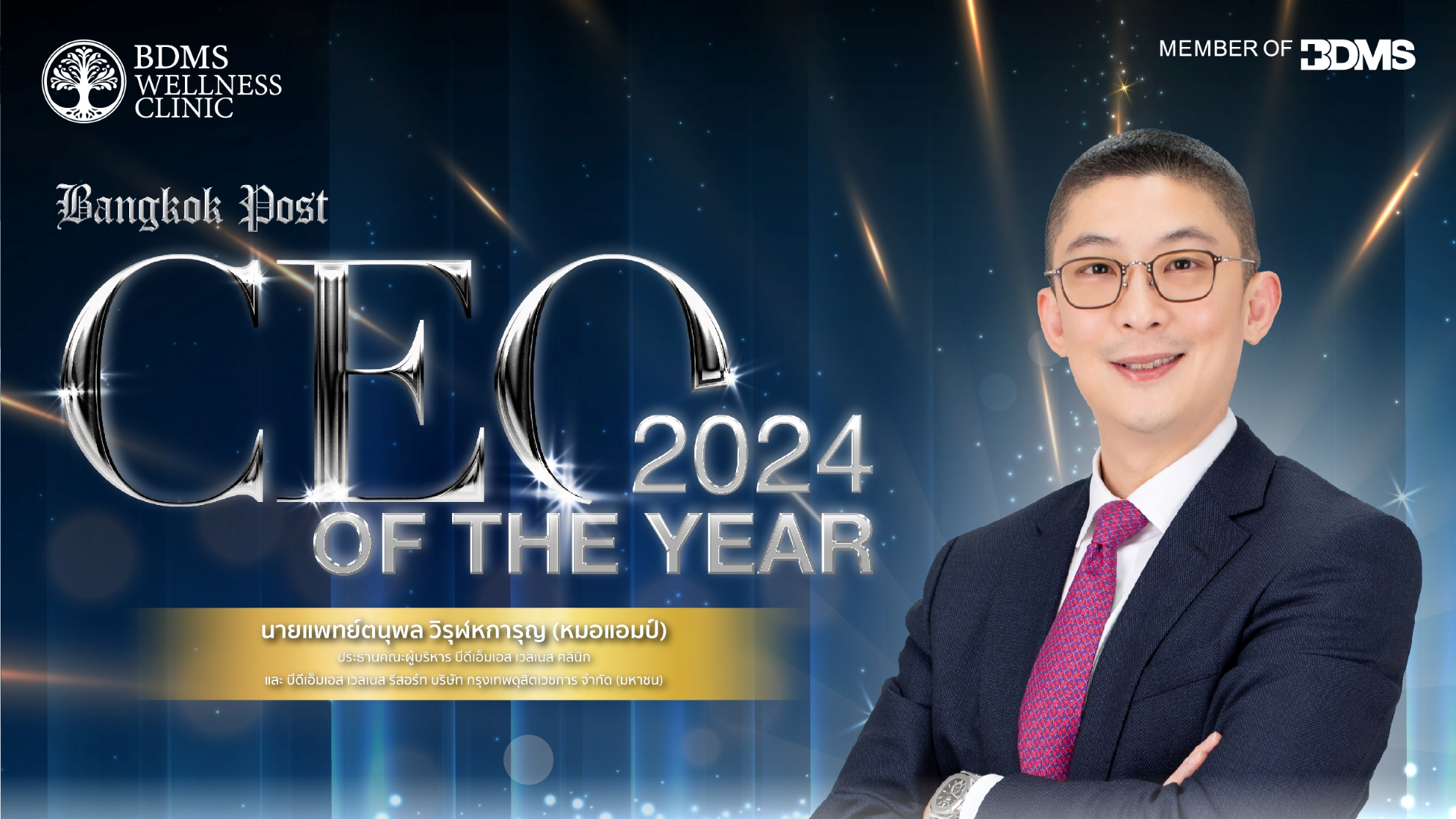 นายแพทย์ตนุพล หรือหมอแอมป์แห่ง BDMS Wellness Clinic คว้ารางวัล CEO of the Year 2024 จาก Bangkok Post ตอกย้ำวิสัยทัศน์ Scientific Wellness Life Blueprint ผลักดันประเทศไทยสู่ Wellness Hub