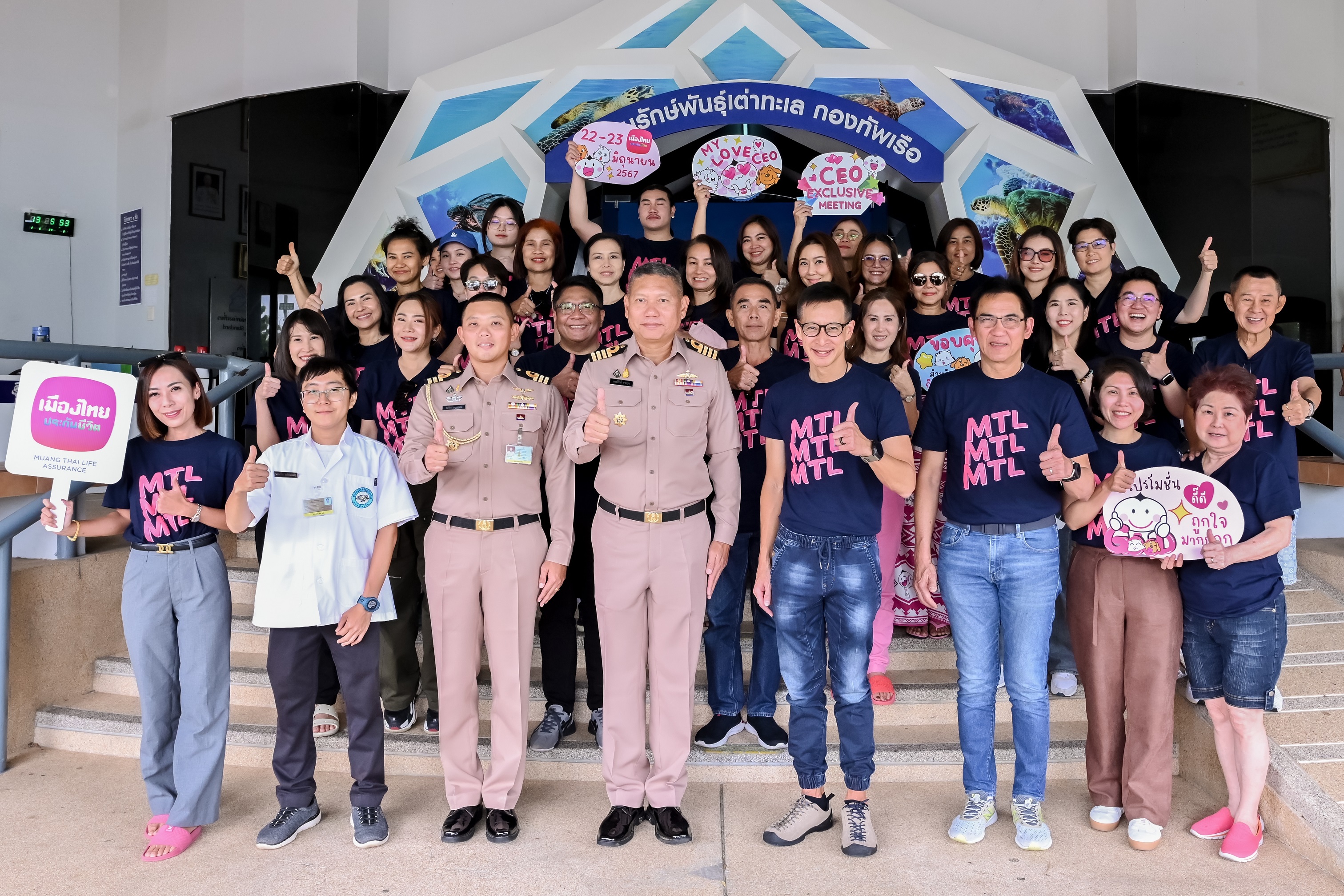 นอกจากนี้บริษัทฯ ยังได้นำคณะตัวแทนจัดกิจกรรมเพื่อสังคม ปล่อยเต่าทะเลคืนสู่ธรรมชาติ ตลอดจน การร่วมทำความสะอาดบ่อพักและบ่อดูแลเต่าที่บาดเจ็บก่อนปล่อยสู่ทะเล โดยวัตถุประสงค์ของการจัดกิจกรรมดังกล่าว คือ เพื่อเสริมสร้างความสัมพันธ์อันดีระหว่างผู้บริหาร และตัวแทน ผ่านการทำกิจกรรมร่วมกัน เพื่อเป็นการปลูกจิตสำนึกให้ตัวแทนของบริษัทฯ มีจิตสาธารณะ รักษ์สิ่งแวดล้อม รวมถึงระบบนิเวศของประเทศไทย ในโอกาสนี้ เมืองไทยประกันชีวิต โดยนายสาระ ล่ำซำ ประธานเจ้าหน้าที่บริหาร ได้บริจาคเงินเพื่อการพัฒนาศูนย์อนุรักษ์เต่าทะเล กองทัพเรือ จำนวน 100,000 บาท โดยมีนาวาเอก พงษ์ศักดิ์ รามนุช ผู้บังคับการศูนย์ต่อสู้อากาศยานและรักษาฝั่ง และ ผู้อำนวยการศูนย์อนุรักษ์พันธุ์เต่าทะเล กองทัพเรือ เป็นผู้รับมอบ พร้อมด้วยนาวาโทณภัทร บุญนรากร หัวหน้าฝ่ายกิจการพลเรือนกองบัญชาการหน่วยต่อสู้อากาศยานเเละรักษาฝั่ง และนายสัตว์แพทย์ กิรินทร์ สรพิพัฒน์เจริญ สัตวแพทย์ประจำโรงพยาบาลเต่าทะเลร่วมในพิธี
