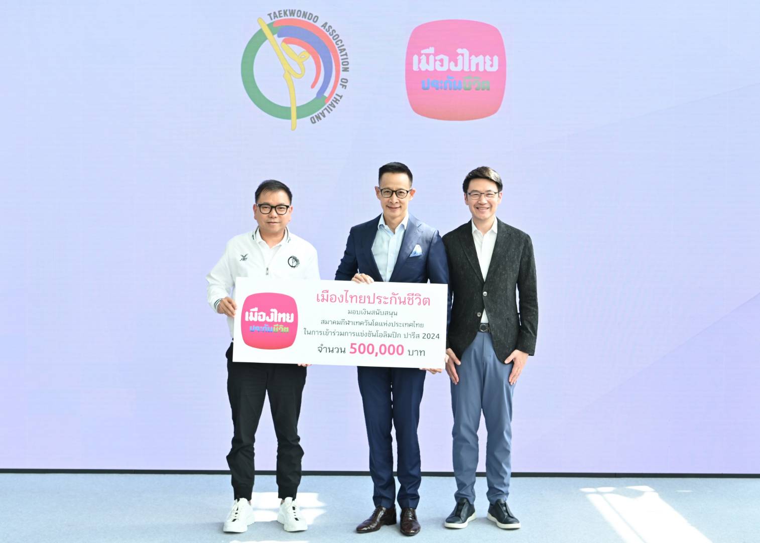 เมืองไทยประกันชีวิตร่วมแสดงความยินดีกับนักกีฬาสมาคมกีฬาเทควันโดแห่งประเทศไทย และสมาคมยกน้ำหนักสมัครเล่นแห่งประเทศไทย ที่ได้เข้าร่วมการแข่งขันโอลิมปิก 2024 พร้อมมอบเงินสนับสนุนพิเศษเพื่อเสริมสร้างขวัญและกำลังใจให้แก่สมาคมและนักกีฬา รวม 2.3 ล้านบาท