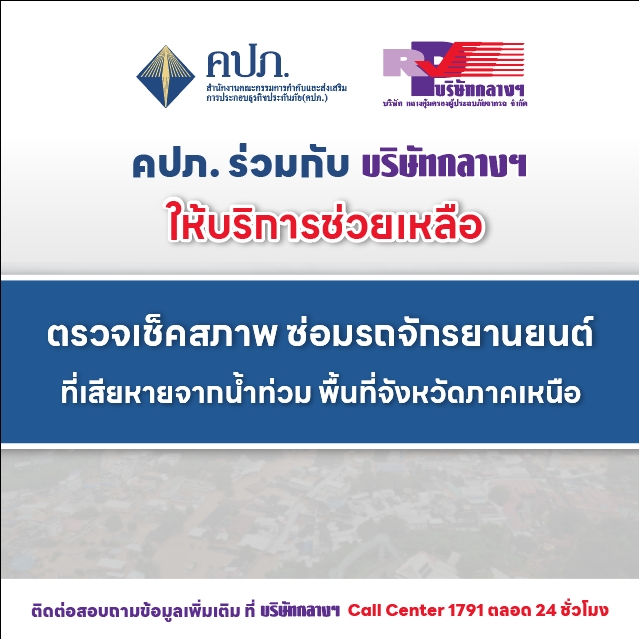 สำนักงานคณะกรรมการกำกับและส่งเสริมการประกอบธุรกิจประกันภัย (คปภ.) ร่วมกับ บริษัท กลางคุ้มครองผู้ประสบภัยจากรถ จำกัด ร่วมให้ความช่วยเหลือแก่ผู้ประสบภัยน้ำท่วมในพื้นที่จังหวัดภาคเหนือ