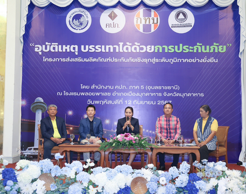 นางสาววสุมดี วสีนนท์ รองเลขาธิการ ด้านกำกับคนกลางและประกันภัยภูมิภาค สำนักงานคณะกรรมการกำกับและส่งเสริมการประกอบธุรกิจประกันภัย (สำนักงาน คปภ.) เป็นประธานเปิดโครงการส่งเสริมผลิตภัณฑ์ประกันภัยเชิงรุกสู่ระดับภูมิภาคอย่างยั่งยืน ประจำปี 2567 พร้อมด้วยคณะผู้บริหารสำนักงาน คปภ. ผู้บริหารสมาคมประกันชีวิตไทย และผู้บริหารสมาคมประกันวินาศภัยไทย ลงพื้นที่จังหวัดมุกดาหาร จัดโดยสำนักงาน คปภ. ภาค 5 (อุบลราชธานี) และสำนักงาน คปภ. จังหวัดมุกดาหาร โดยมีนายณรงค์ เทพรักษ์ รองผู้ว่าราชการจังหวัดมุกดาหาร ให้การต้อนรับ เมื่อวันที่ 12 กันยายน 2567 ณ ห้องพลอย บอลรูม โรงแรมพลอยพาเลซ จังหวัดมุกดาหารรอง