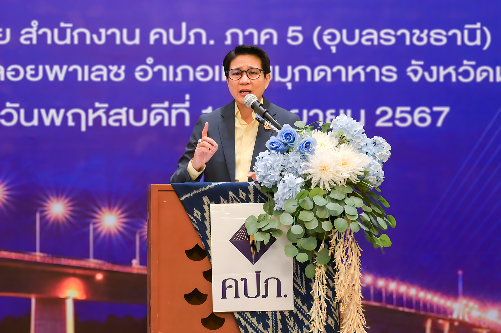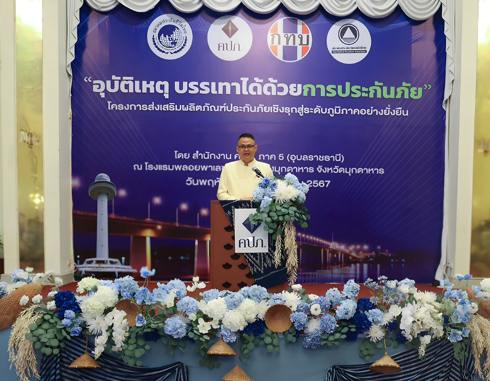 เลขาธิการ ด้านกำกับคนกลางฯ เปิดเผยว่า สำนักงาน คปภ. มีนโยบายในการส่งเสริมความรู้สร้างความเข้าใจให้ประชาชนทั่วประเทศ ตระหนักและเห็นความสำคัญของการทำประกันภัยที่เป็นเครื่องมือในการบริหารความเสี่ยงให้กับชีวิตและทรัพย์สินของประชาชน ดังนั้น จึงได้ดำเนินโครงการส่งเสริมผลิตภัณฑ์ประกันภัยเชิงรุกสู่ระดับภูมิภาคอย่างยั่งยืน ประจำปี 2567 เพื่อให้ประชาชนทุกกลุ่มเป้าหมายสามารถเข้าถึงระบบประกันภัยในบริบทของพื้นที่ได้อย่างทั่วถึง และครั้งนี้นับเป็นครั้งที่ 9 โดยได้เลือกจังหวัดมุกดาหารเป็นจังหวัดสุดท้ายของการดำเนินโครงการฯ เนื่องจากเล็งเห็นว่าชาวจังหวัดมุกดาหาร มีทรัพยากรธรรมชาติและศิลปวัฒนธรรมที่งดงามอยู่ในที่เดียวกัน รวมทั้งยังมีสะพานมิตรภาพไทย-ลาว แห่งที่ 2 ที่เป็นส่วนหนึ่งของเส้นทางเศรษฐกิจทางตะวันตกและตะวันออกที่ช่วยสร้างความเติบโตให้กับระบบเศรษฐกิจของประเทศ ซึ่งจากข้อมูลพบว่าจังหวัดมุกดาหาร มีประชากรอาศัยกว่า 350,000 คน มีสถิติการเกิดอุบัติบนท้องถนนอยู่ในระดับสูงซึ่งเป็นปัญหาสำคัญของจังหวัด ประกอบกับมีผู้ทำประกันภัยเพียง 85,000 คน ดังนั้น แสดงให้เห็นว่าชาวจังหวัดมุกดาหาร ยังมีการใช้ประกันภัยเป็นเครื่องมือในการบริหารความเสี่ยงทางการเงินอย่างจำกัด