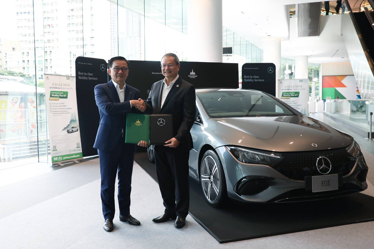 บริษัท ไทยกรุ๊ป โฮลดิ้งส์ จำกัด (มหาชน) กลุ่มธุรกิจประกันและการเงินในเครือทีซีซี โดยนายโชติพัฒน์ พีชานนท์ ประธานกรรมการบริหาร และ บริษัท เมอร์เซเดส-เบนซ์ โมบิลิตี้ (ประเทศไทย) จำกัด ผู้ให้บริการทางการเงินอย่างเป็นทางการสำหรับรถยนต์เมอร์เซเดส-เบนซ์ โดย นายศุภวุฒิ จีรมนัสนาคร ประธานกรรมการบริหาร ผนึกกำลังร่วมสร้างสรรค์นวัตกรรมทางการเงินที่คุ้มค่า สำหรับลูกค้าเมอร์เซเดส-เบนซ์ โมบิลิตี้ จัดงานเปิดตัวแคมเปญ “รับเงินแสน คืนเงินล้าน” ได้ทั้งรถใหม่ ผลตอบแทนพิเศษจากผลิตภัณฑ์ประกันจาก SE Life อาคเนย์ประกันชีวิต “Wealthy Plus 5/1” ที่ออกแบบสำหรับแคมเปญนี้โดยเฉพาะ โดยจ่ายเบี้ยประกันภัยเพียงครั้งเดียว รับเงินคืน 2.4% ของเงินเอาประกันภัย ทุกปี ตลอด 5 ปี และเมื่อครบ 5 ปี ได้เงินคืนทั้งก้อน พร้อมได้รับสิทธิพิเศษอีกมากมายจากไทยกรุ๊ป โฮลดิ้งส์ ผ่านแพลตฟอร์ม S Plus Loyalty Program เฉพาะลูกค้าเมอร์เซเดส-เบนซ์ ที่ใช้บริการทางการเงินกับเมอร์เซเดส-เบนซ์ โมบิลิตี้ (ประเทศไทย) เท่านั้น