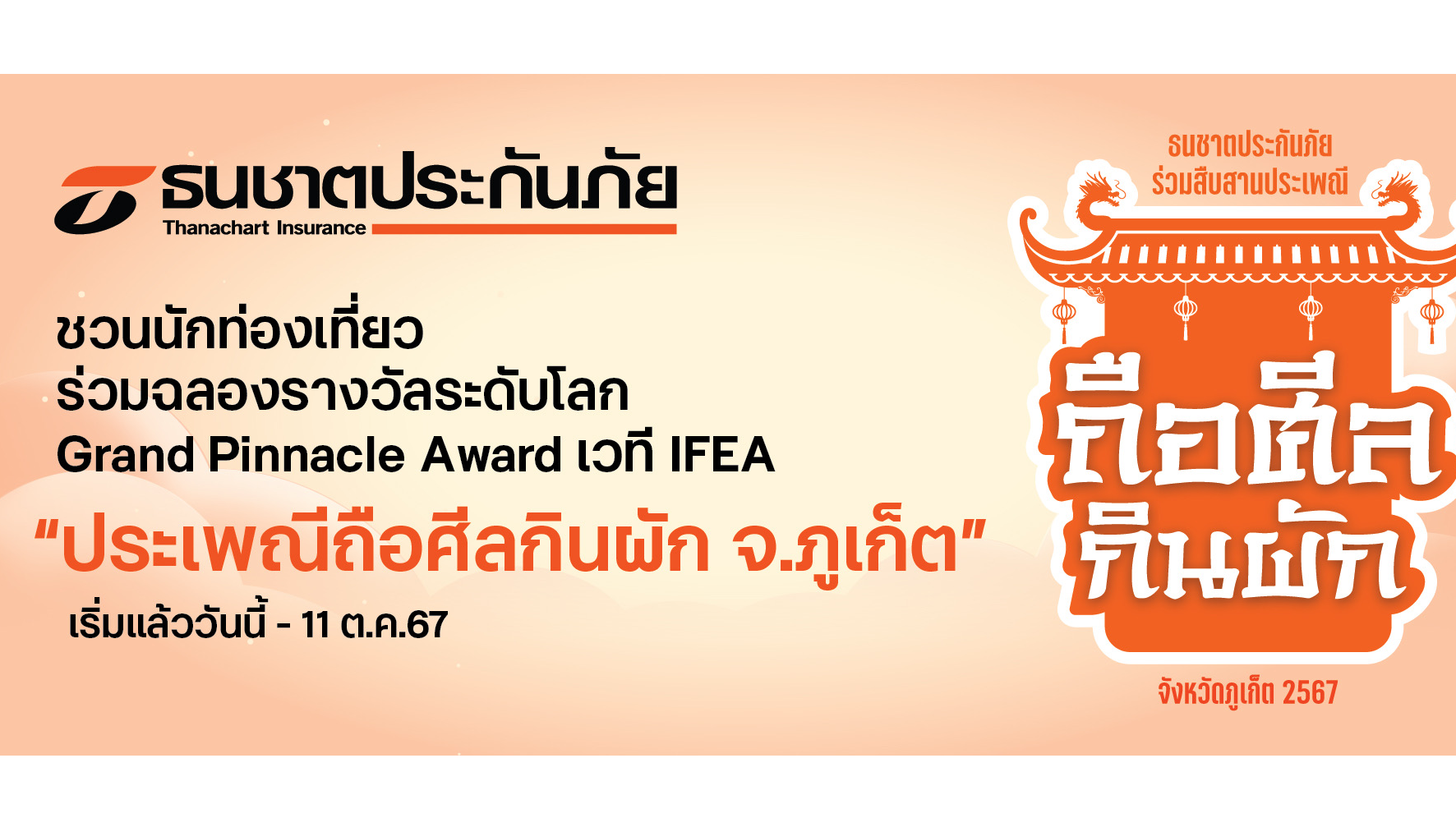 ธนชาตประกันภัย ชวนนักท่องเที่ยวร่วมฉลองรางวัลระดับโลก “งานประเพณีถือศีลกินผัก จ.ภูเก็ต” เริ่มแล้ววันนี้ - 11 ต.ค. 67