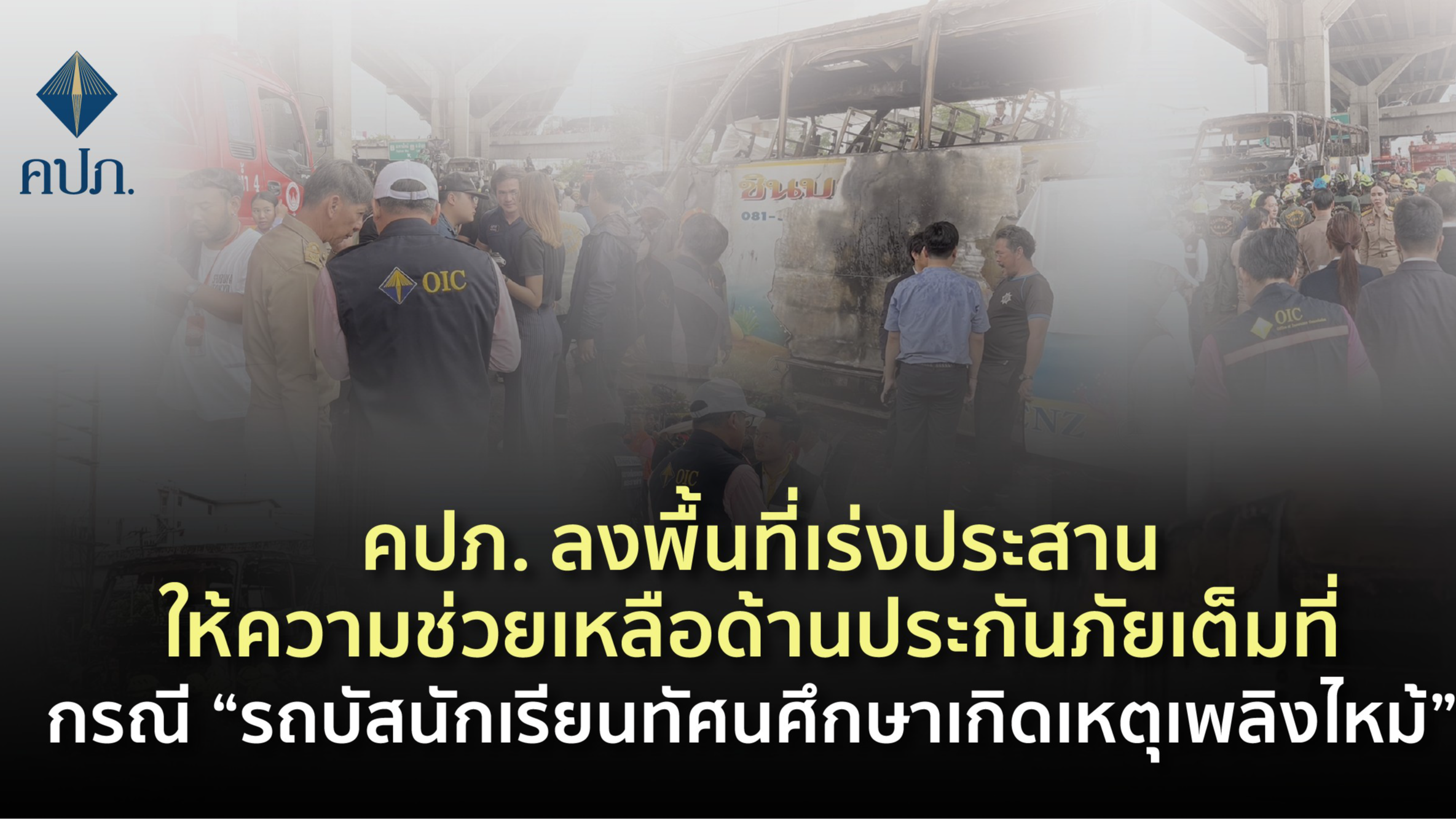 คปภ. ลงพื้นที่เร่งประสานให้ความช่วยเหลือด้านประกันภัยเต็มที่ กรณี “รถบัสนักเรียนทัศนศึกษาเกิดเหตุเพลิงไหม้”