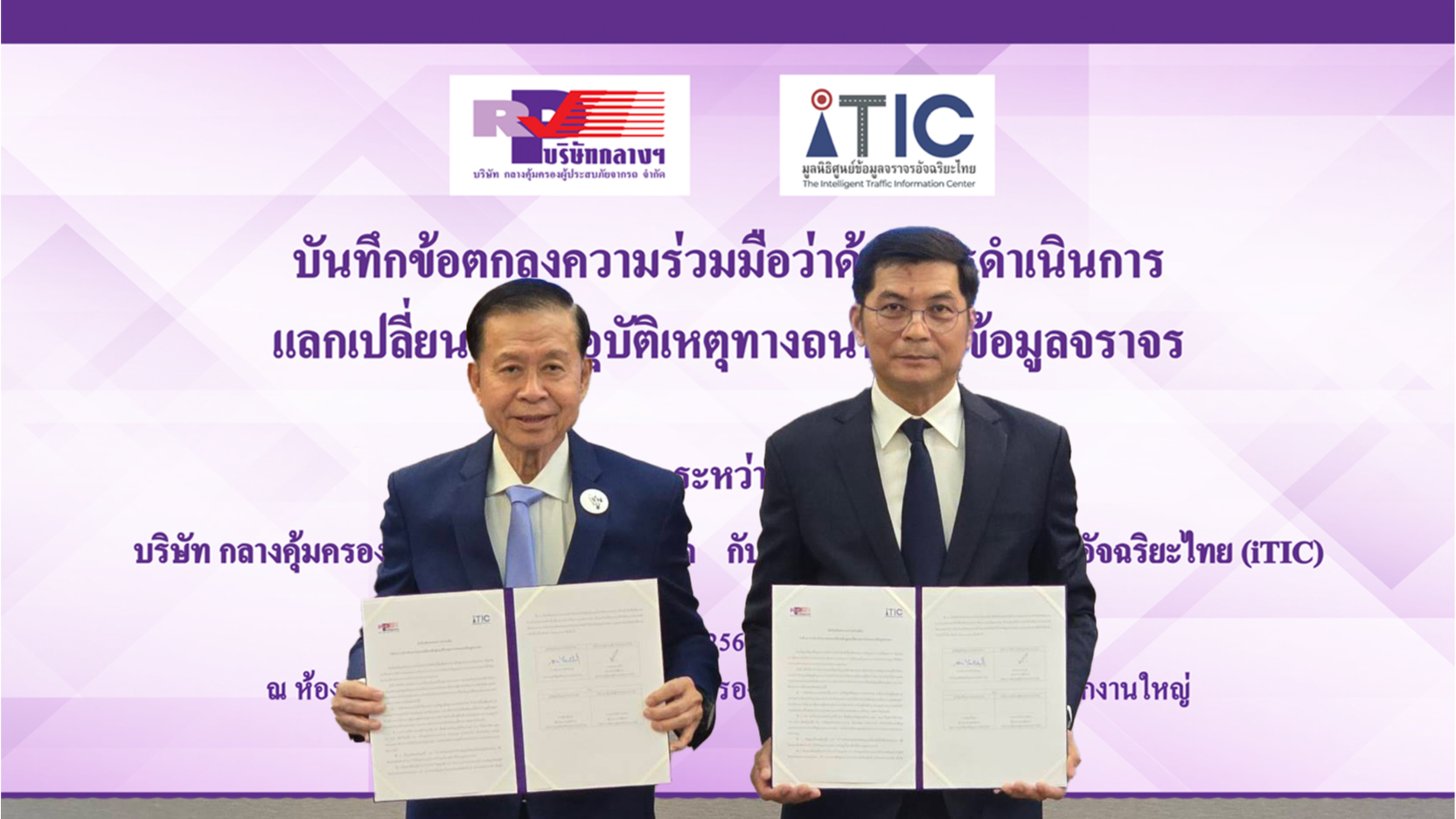 บริษัท กลางคุ้มครองผู้ประสบภัยจากรถ จำกัด จับมือมูลนิธิศูนย์ข้อมูลจราจรอัจฉริยะไทย (iTIC) ร่วมลงนามบันทึกข้อตกลงความร่วมมือว่าด้วยการดำเนินการแลกเปลี่ยนข้อมูลอุบัติเหตุทางถนนและข้อมูลจราจร