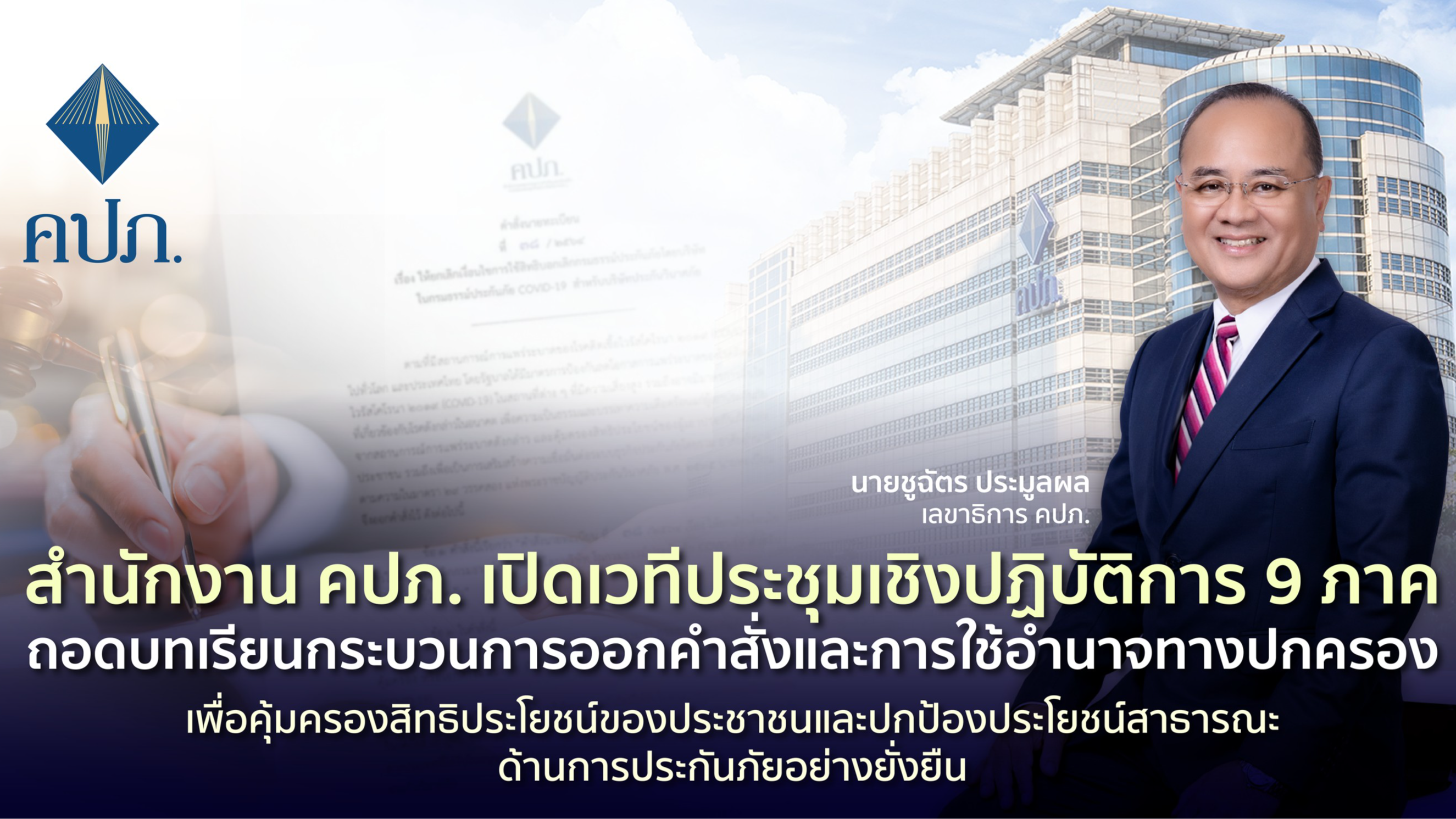 สำนักงาน คปภ. เปิดเวทีประชุมเชิงปฏิบัติการ 9 ภาค ถอดบทเรียนกระบวนการออกคำสั่งและการใช้อำนาจทางปกครอง เพื่อคุ้มครองสิทธิประโยชน์ของประชาชนและปกป้องประโยชน์สาธารณะด้านการประกันภัยอย่างยั่งยืน
