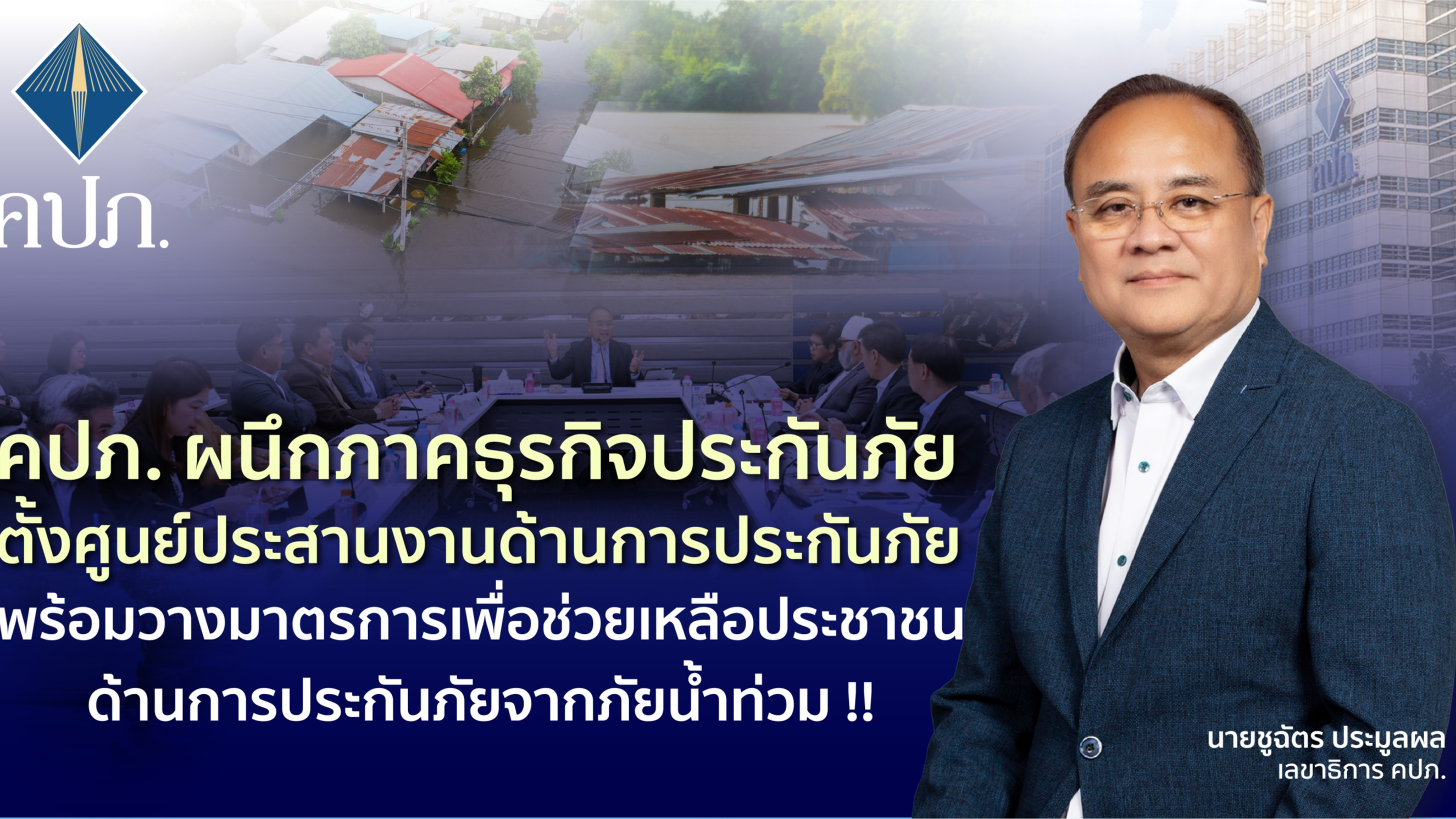 คปภ. ผนึกภาคธุรกิจประกันภัย ตั้งศูนย์ประสานงานด้านการประกันภัย พร้อมวางมาตรการเพื่อช่วยเหลือประชาชนด้านการประกันภัยจากภัยน้ำท่วม !!