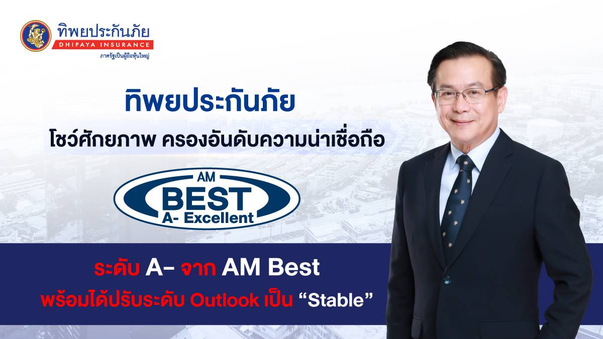 ทิพยประกันภัยตอกย้ำความแข็งแกร่ง AM BEST จัดอันดับความน่าเชื่อถือ A- 6 ปีซ้อน พร้อมได้ปรับระดับ Outlook เป็น “Stable”