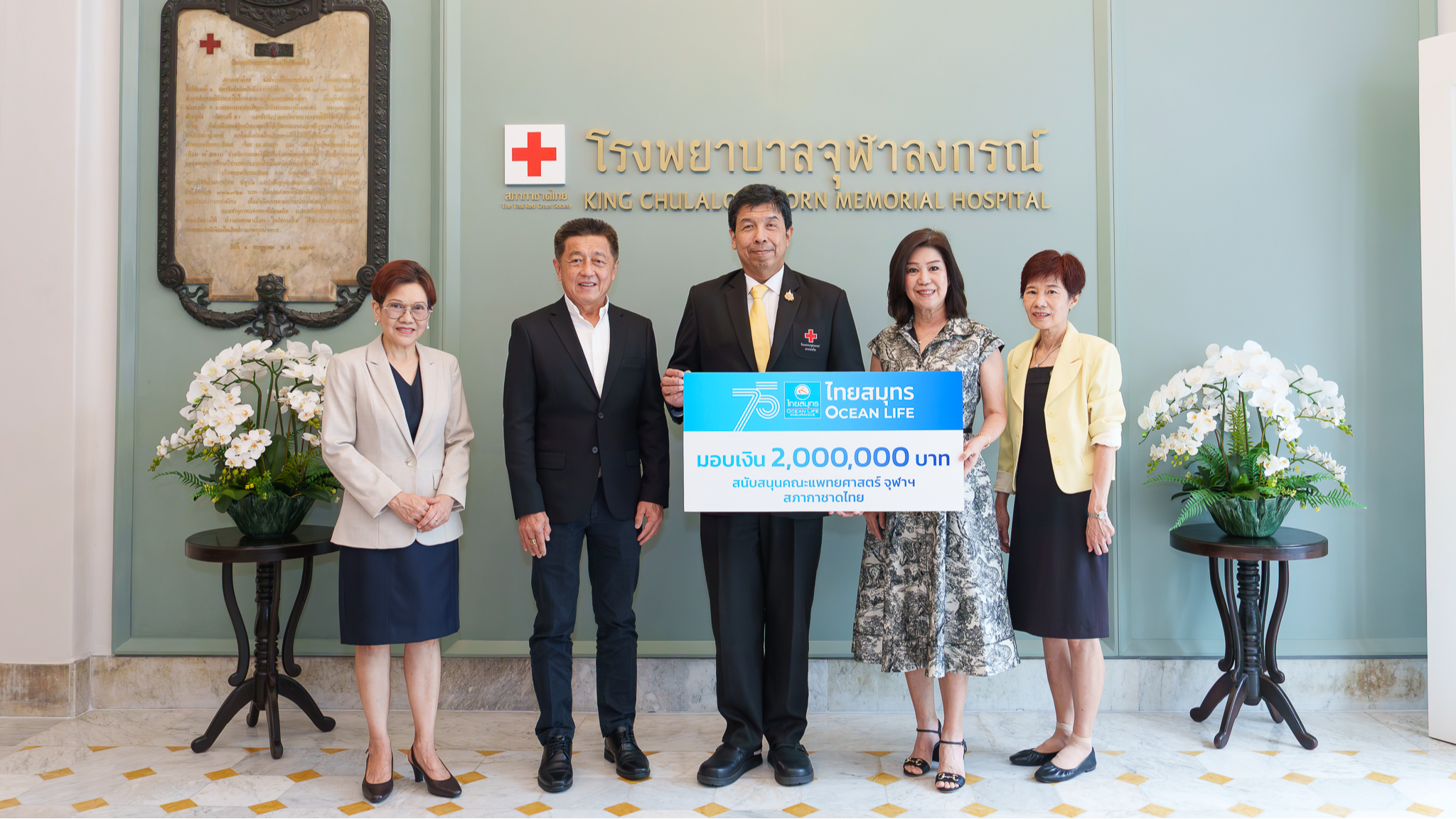 OCEAN LIFE ไทยสมุทร ฉลอง 75 ปี มอบ 2 ล้านบาท ให้โรงพยาบาลจุฬาลงกรณ์ ร่วมส่งพลังความรักดูแลสุขภาพและยกระดับคุณภาพชีวิตให้กับคนไทย