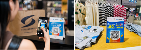 เซ็นทรัล รีเทล เริ่มให้บริการรับชำระเงินผ่าน Alipay แก่นักท่องเที่ยวชาวจีนตั้งแต่ปี 2558 และต่อมาได้ขยายความร่วมมือกับ Alipay+ ในเดือนกรกฎาคม ปี 2566 เพื่อตอบสนองต่อพฤติกรรมและความต้องการของนักท่องเที่ยวยุคใหม่ที่นิยมชำระเงินแบบดิจิทัล โดยรองรับการชำระเงินผ่านแอปพลิเคชันชำระเงินผ่านโทรศัพท์มือถือระหว่างประเทศจาก 13 ประเทศทั่วโลก ที่ห้างสรรพสินค้าและร้านค้ากว่า 3,000 แห่งในเครือเซ็นทรัล รีเทล