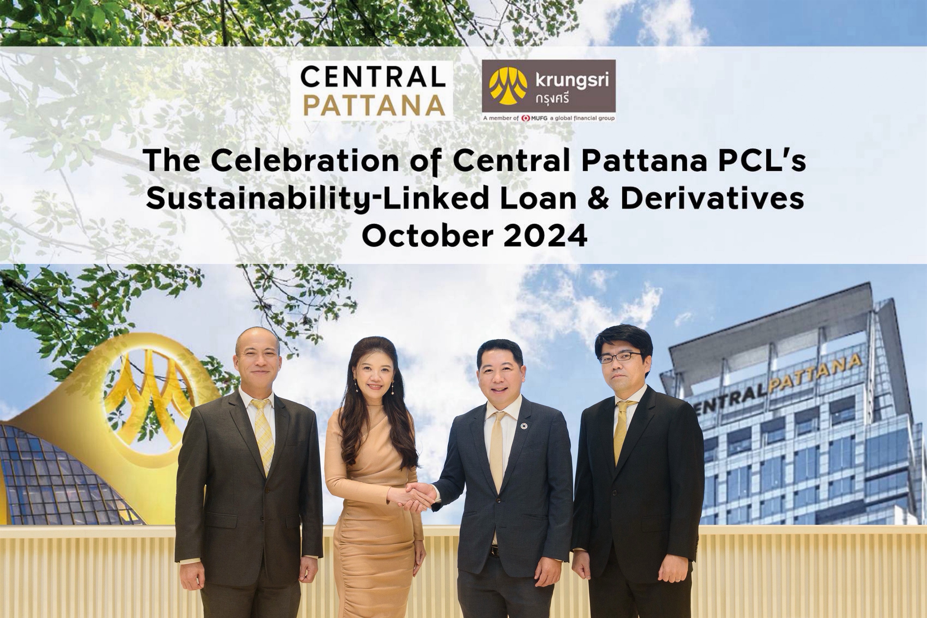 นายฮิโรทากะ คุโรกิ ประธานคณะเจ้าหน้าที่ด้านโกลบอลมาร์เก็ตส์ ธนาคารกรุงศรีอยุธยา จำกัด (มหาชน) กล่าวว่า “กรุงศรีรู้สึกภูมิใจที่ได้นำเสนอผลิตภัณฑ์อนุพันธ์ที่เชื่อมโยงกับการดำเนินงานด้านความยั่งยืน (Sustainability-Linked Derivatives) ให้กับเซ็นทรัลพัฒนา ซึ่งเป็นธุรกรรมอนุพันธ์เชื่อมโยงกับความยั่งยืนครั้งแรกของเซ็นทรัลพัฒนา ผลิตภัณฑ์นี้ออกแบบมาเพื่อช่วยลูกค้าบริหารความเสี่ยงจากอัตราดอกเบี้ย และยังมอบผลประโยชน์ตามการบรรลุเป้าหมายด้าน ESG ความสำเร็จของการนำเสนอผลิตภัณฑ์นี้เกิดจากความร่วมมือของหลายภาคส่วนภายในกรุงศรี เพื่อบูรณาการผลิตภัณฑ์ทางการเงินที่ส่งเสริมความยั่งยืน ไม่ว่าจะเป็นสินเชื่อที่เชื่อมโยงกับการดำเนินงานด้านความยั่งยืน และอนุพันธ์ที่เชื่อมโยงกับการดำเนินงานด้านความยั่งยืน ซึ่งทำให้กรุงศรีสามารถนำเสนอโซลูชันทางการเงินที่สอดคล้องกับเป้าหมายการลดปริมาณคาร์บอน ซึ่งเป็นอีกหนึ่งส่วนสำคัญที่ช่วยสร้างการเติบโตที่ยั่งยืนให้กับเซ็นทรัลพัฒนา”แวดล้อมระยะยาวของเซ็นทรัลพัฒนา ในการจัดสรร 30% ของเงินกู้ยืมเพื่อดำเนินงานตามกรอบการพัฒนา ESG ซึ่งเป็นพื้นฐานสำคัญในการริเริ่มโครงการต่าง ๆ เช่น การลดการปล่อยก๊าซเรือนกระจก Scope 1 และ Scope 2 การใช้พลังงานทดแทน และการพัฒนาอาคารสีเขียวในโครงการอสังหาริมทรัพย์ของเซ็นทรัลพัฒนา นางสาวนภารัตน์ ศรีวรรณวิทย์