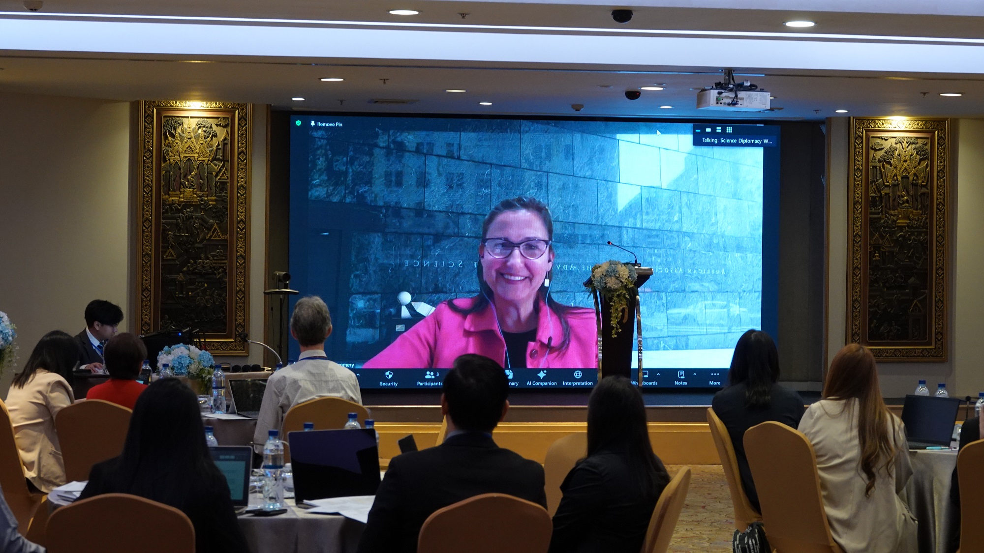 กรุงเทพฯ 9 ตุลาคม 2567 – สำนักงานคณะกรรมการส่งเสริม วิทยาศาสตร์ วิจัยและนวัตกรรม (สกสว.) ร่วมกับ องค์การพิพิธภัณฑ์วิทยาศาสตร์แห่งชาติ (อพวช.) The American Association for the Advancement of Science (AAAS) และ The World Academy of Sciences (TWAS) จัดประชุมเชิงปฏิบัติการ The Pilot Science Diplomacy Workshop for Early-to-Mid Career Researchers in ASEAN Plus Three โดยได้รับเกียรติจาก H.E. Masato Otaka เอกอัครราชทูตญี่ปุ่นประจำประเทศไทย และ Dr. Patricia Gruber ที่ปรึกษาด้านวิทยาศาสตร์และเทคโนโลยีของรัฐมนตรีต่างประเทศ กระทรวงการต่างประเทศสหรัฐอเมริกา ร่วมปาฐกถาพิเศษผ่านสื่ออิเล็กทรอนิกส์ออนไลน์