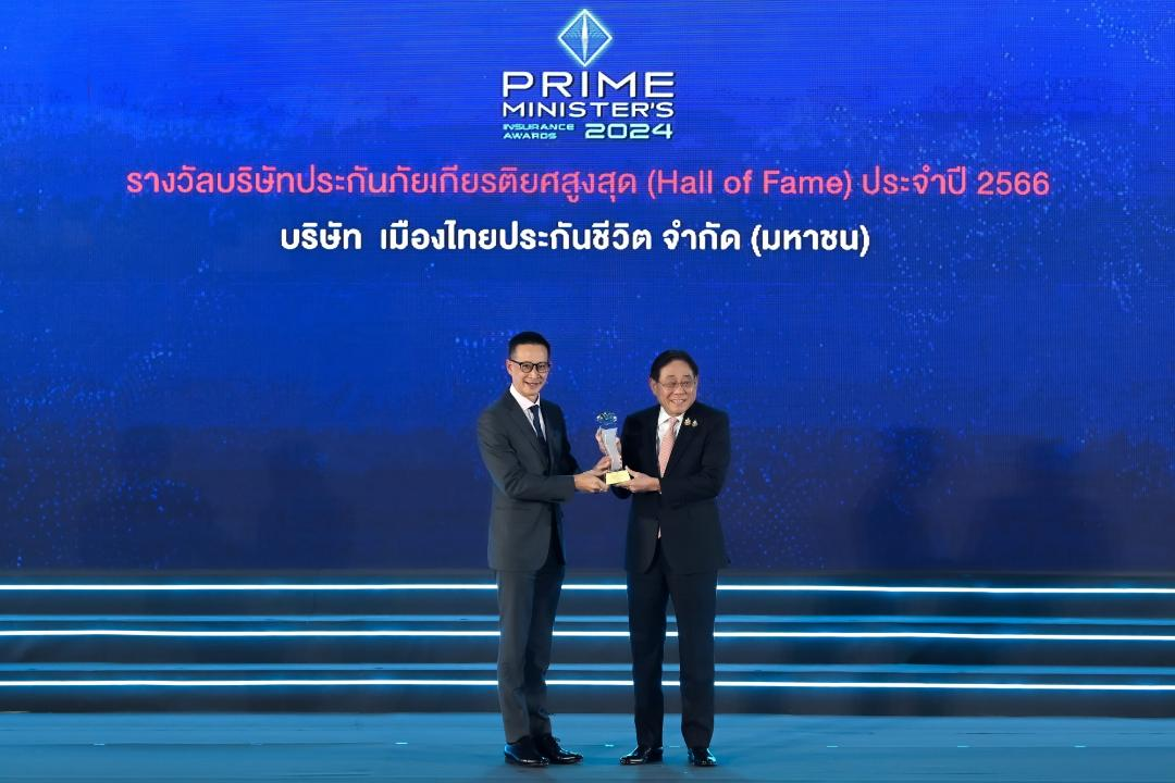 บริษัท เมืองไทยประกันชีวิต จำกัด (มหาชน) นำโดย นายสาระ ล่ำซำ ประธานเจ้าหน้าที่บริหาร พร้อมด้วย ดร.สุธี โมกขะเวส กรรมการผู้จัดการ สร้างประวัติศาสตร์วงการประกันภัยครั้งสำคัญ เข้ารับ 2 รางวัลเกียรติยศแห่งความภาคภูมิใจและความเชื่อมั่น ประจำปี 2566 ประกอบด้วย “รางวัลบริษัทประกันภัยเกียรติยศสูงสุด (Hall of Fame)” ต่อเนื่องเป็นปีที่ 4 ซึ่งเป็นรางวัลสูงสุดในภาคอุตสาหกรรมประกันภัยและเป็นเพียงบริษัทเดียวที่ได้รับ “รางวัลบริษัทประกันชีวิตที่มีการส่งเสริมกรมธรรม์ประกันภัยเพื่อประชาชนดีเด่น” ต่อเนื่องเป็นปีที่ 11 จากพิธีมอบรางวัลประกันภัยดีเด่นครบวงจร ประจำปี 2567 (Prime Minister’s Insurance Awards 2024) ซึ่งจัดโดยสำนักงานคณะกรรมการกำกับและส่งเสริมการประกอบธุรกิจประกันภัย (คปภ.) โดยมีนายพิชัย ชุณหวชิร รองนายกรัฐมนตรี และรัฐมนตรีว่าการกระทรวงการคลัง ประธานในพิธีเป็นผู้มอบ และ นายชูฉัตร ประมูลผล เลขาธิการคณะกรรมการกำกับและส่งเสริมการประกอบธุรกิจประกันภัย (คปภ.) ร่วมแสดงความยินดี งานจัดขึ้น ณ ห้อง World Ballroom โรงแรมเซ็นทาราแกรนด์ และบางกอกคอนเวนชันเซ็นเตอร์ เซ็นทรัลเวิลด์