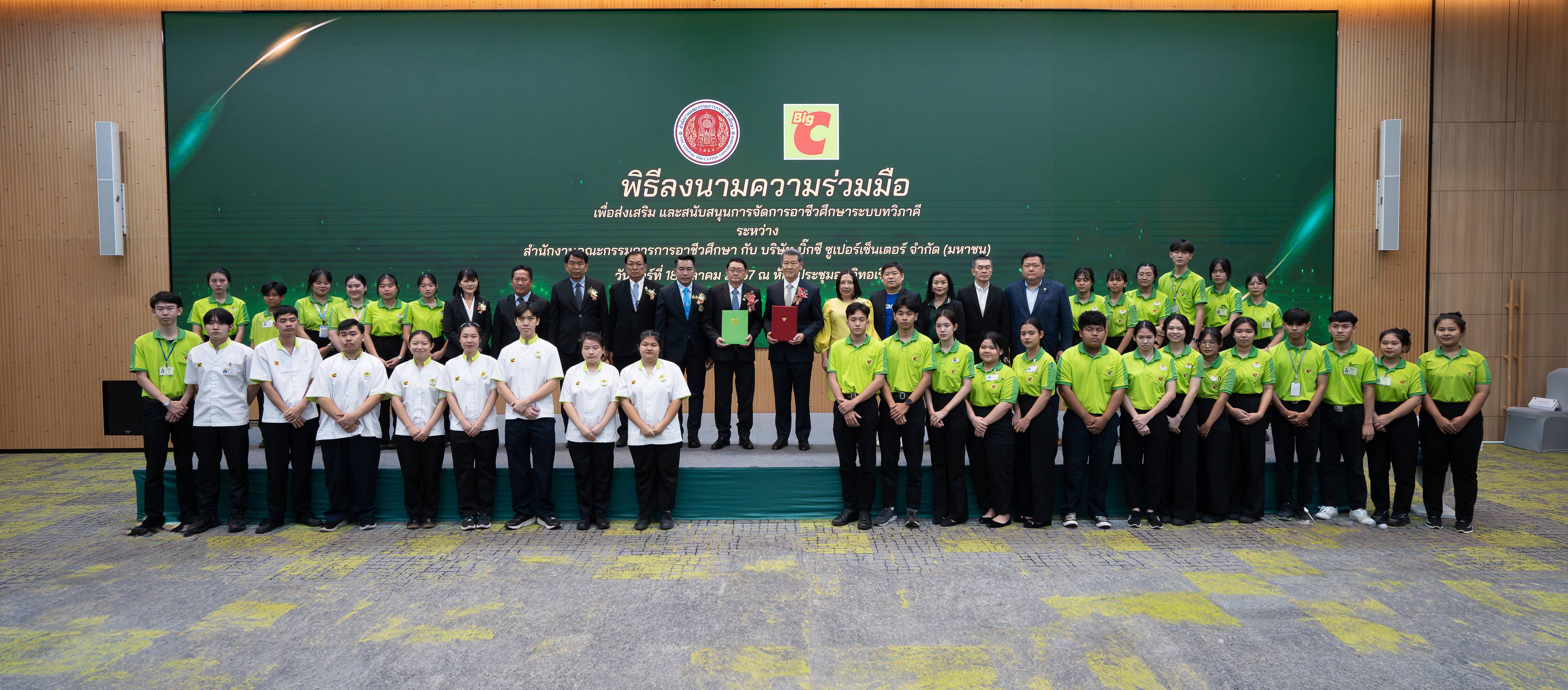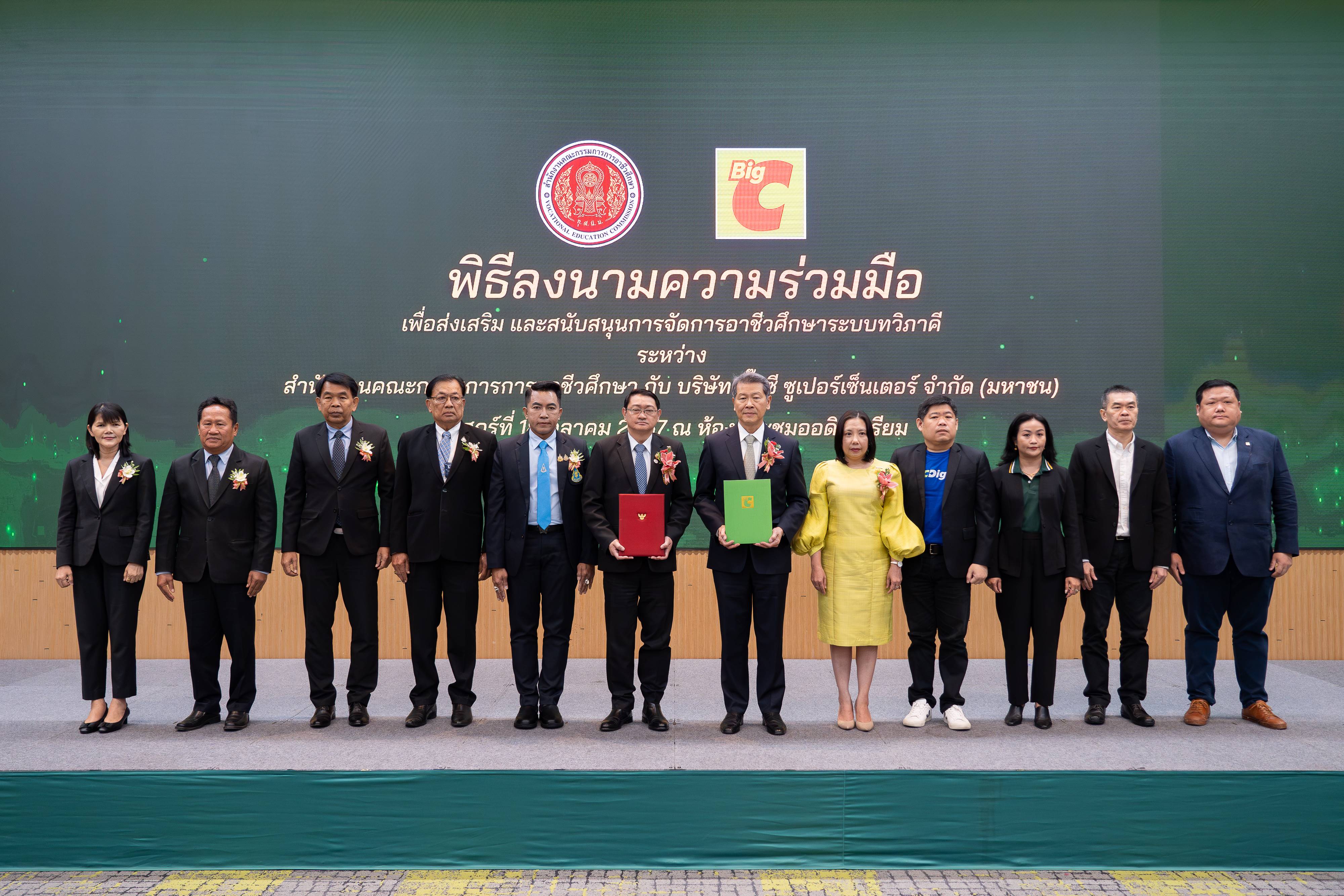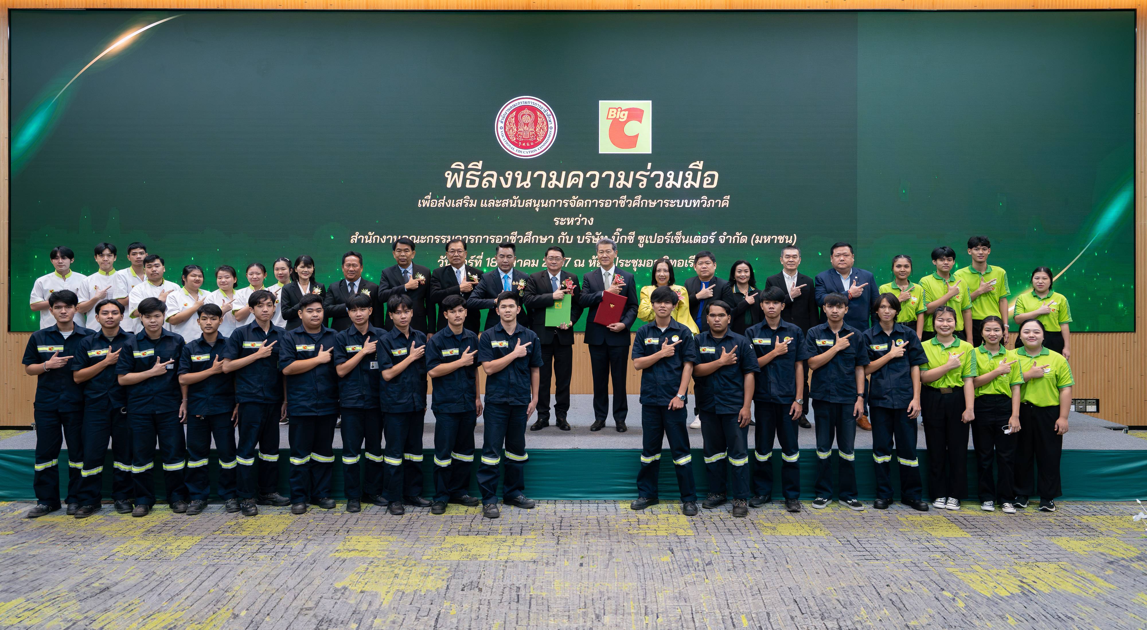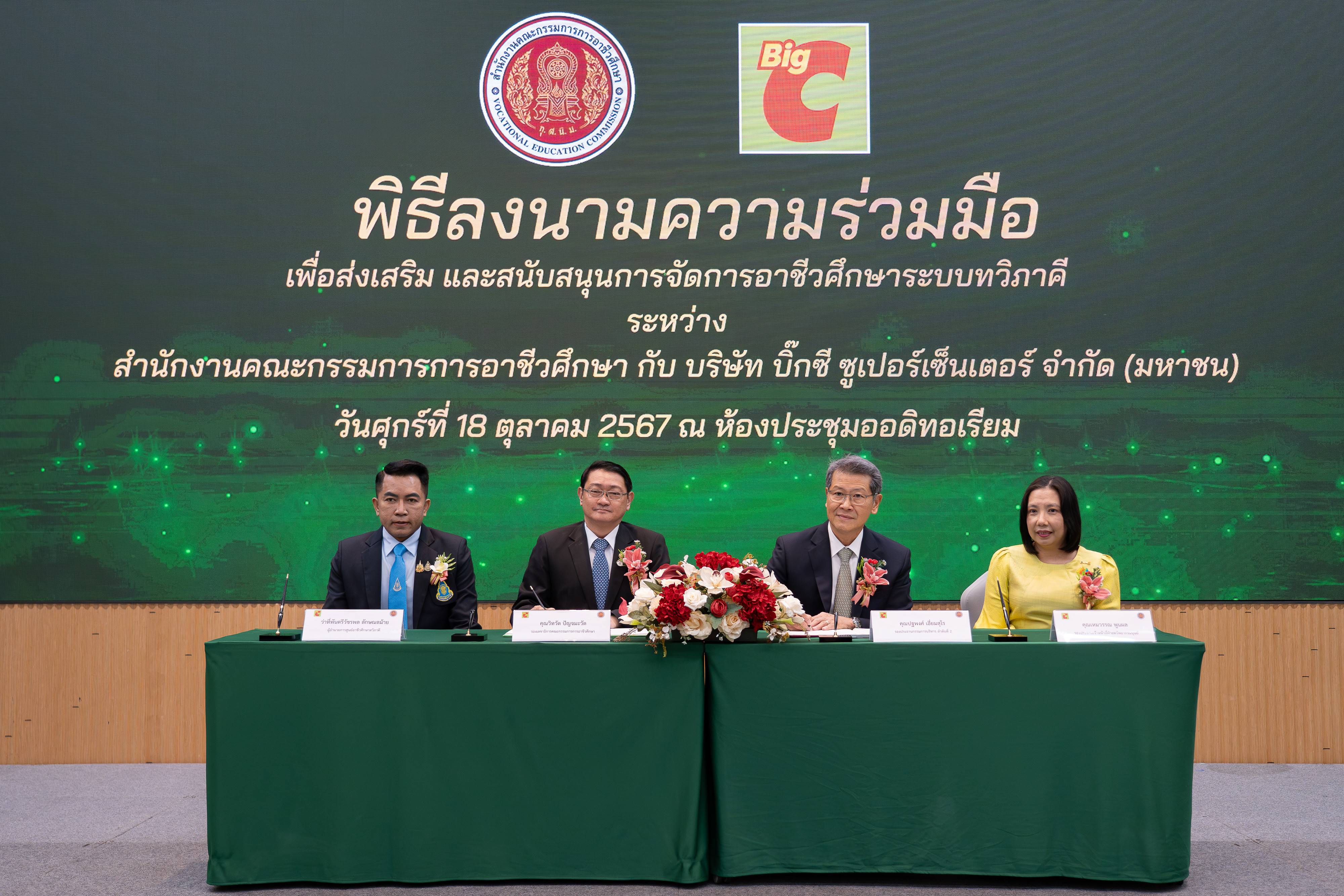 เมื่อวันที่ 22 ตุลาคม 2567 – สำนักงานคณะกรรมการการอาชีวศึกษา หรือ สอศ. กระทรวงศึกษาธิการ โดยนายวิทวัต ปัญจมะวัต รองเลขาธิการคณะกรรมการการอาชีวศึกษา และ บริษัท บิ๊กซี ซูเปอร์เซ็นเตอร์ จำกัด (มหาชน) โดยคุณปฐพงศ์ เอี่ยมสุโร รองประธานกรรมการบริหารคนที่ 2 ร่วมลงนามความร่วมมือเพื่อส่งเสริม และสนับสนุนการจัดการอาชีวศึกษาระบบทวิภาคี โดยมีนายธนภัทร แสงจันทร์ ผู้อำนวยการสำนักความร่วมมือ ว่าที่พันตรีวัชรพล ลักษณลม้าย ผู้อำนวยการศูนย์อาชีวศึกษาทวิภาคี และผู้อำนวยการสถาบันการอาชีวศึกษา ผู้อำนวยการสถานศึกษาในสังกัดสำนักงานคณะกรรมการการอาชีวศึกษา ทั้งภาครัฐและเอกชนร่วมเป็นสักขีพยาน ณ อาคารบิ๊กซีเฮ้าส์ สำนักงานใหญ่