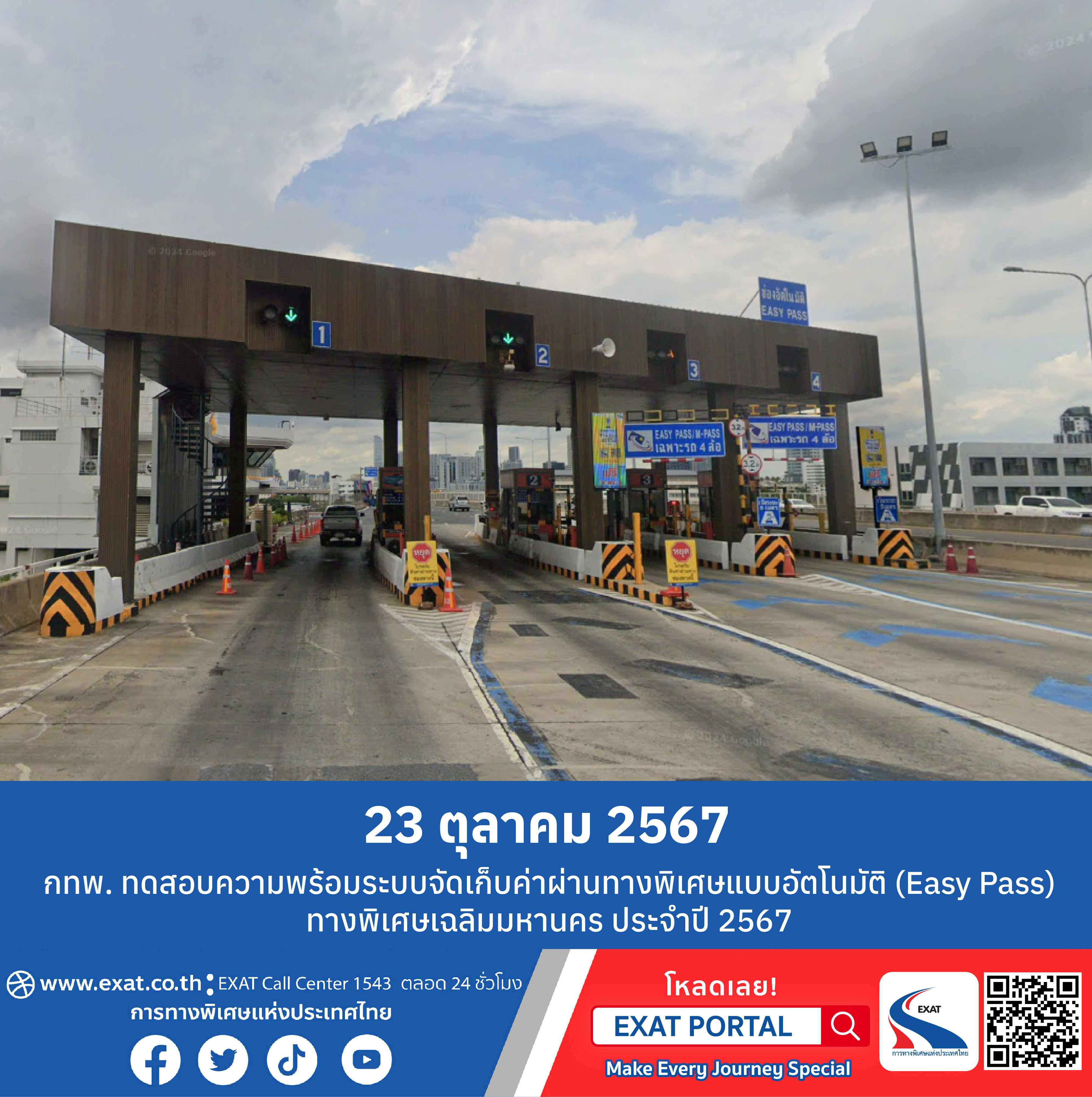 23 ต.ค. 67 กทพ. ทดสอบความพร้อมระบบจัดเก็บค่าผ่านทางพิเศษแบบอัตโนมัติ (Easy Pass) ทางพิเศษเฉลิมมหานคร ประจำปี 2567