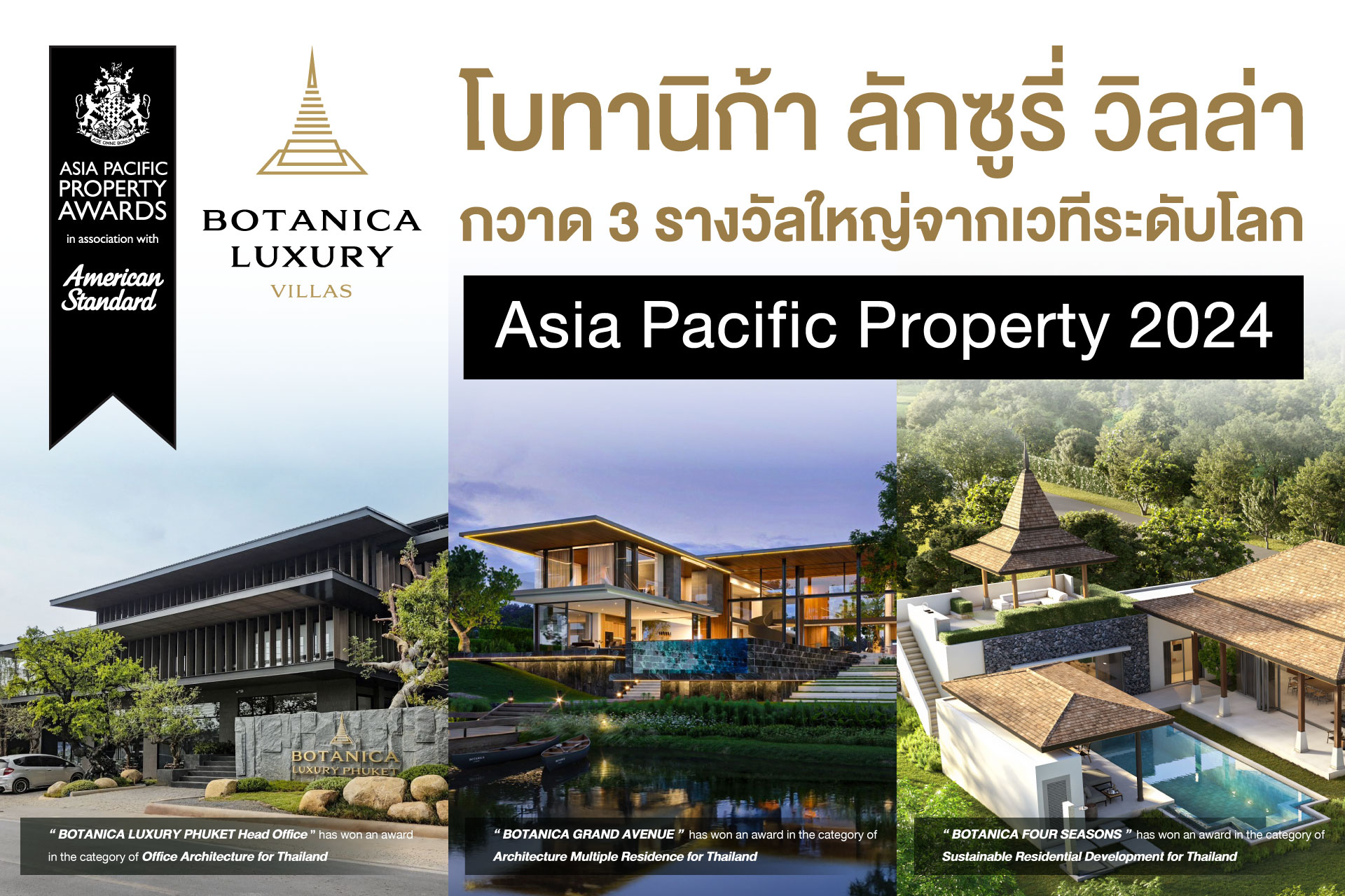 ทั้ง 3 โครงการโดย “โบทานิก้า ลักซูรี่ วิลล่า” ที่ได้รับรางวัลใหญ่ใน 3 สาขา ได้แก่