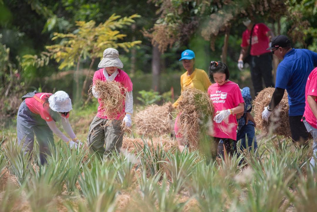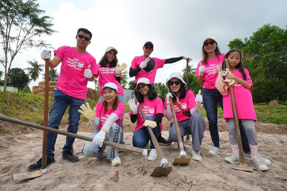 พนักงานเชฟรอนและครอบครัวได้ช่วยกันลงแรงอย่างพร้อมเพรียง โดยช่วงเช้าวิทยากรได้แบ่งกลุ่มส่งต่อแนวความรู้หลักกสิกรรมธรรมชาติ เพื่อสร้างความสมดุลของระบบนิเวศที่เลียนแบบธรรมชาติ ทั้งการห่มดินด้วยฟาง พร้อมศึกษาวิธีบำรุงดินให้ดินเลี้ยงพืช ด้วยวิธี “แห้งชาม” ที่นำปุ๋ยจากธรรมชาติมาโรยฟางที่ห่มไว้ และตามด้วยปุ๋ยน้ำหมักชีวภาพที่เรียกว่า “น้ำชาม” รวมถึงร่วมกันปลูกไม้ป่า ไม้ผล และสมุนไพร จำนวน 1,000 ต้น เพื่อสร้างแหล่งอาหารเป็นยาในอนาคต โดยเมื่อเข้าสู่ช่วงบ่าย แม้ฝนจะตกหนัก แต่บรรยากาศกลับเต็มไปด้วยใบหน้าเปื้อนยิ้มของพนักงานอาสาและครอบครัวที่กำลังตั้งใจเรียนรู้การทำยาดมและน้ำมันเขียวสมุนไพร รวมถึงทำซีอิ๊วหมักและเมี่ยงคำจากสวนสมุนไพรกินได้อย่างใจจดจ่อ พร้อมจุดประกายการสร้างสุขภาพดีด้วยวิถีธรรมชาติอย่างแท้จริง