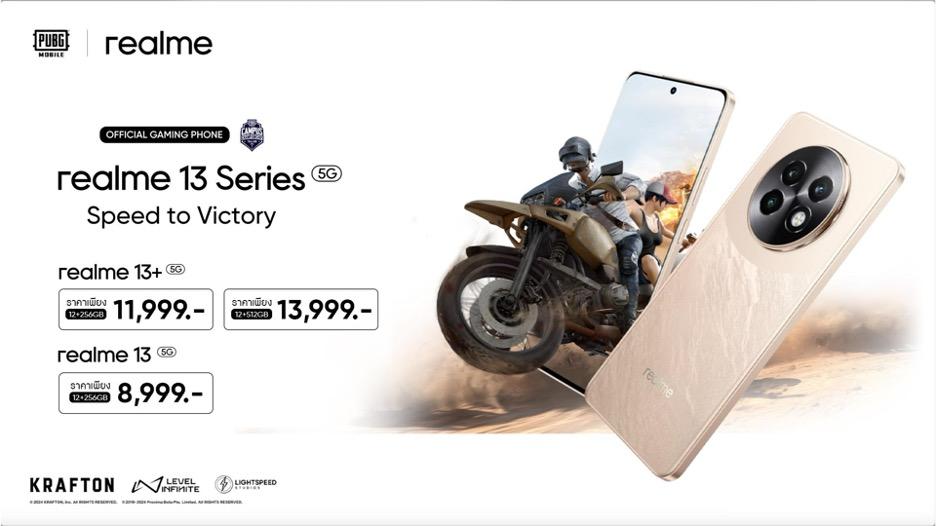 พฯ 24 ตุลาคม 2567 – เปิดขายพร้อมกันทุกแพลตฟอร์ม! ที่สุดของการรอคอยของแฟน ๆ เรียลมีที่ต้องการจับจองสุดยอด Gaming Dominator เมื่อ realme ประกาศวางจำหน่าย “realme 13 Series” ทุกรุ่นพร้อมกันในวันที่ 25 ตุลาคมนี้ โดยหลังจากที่เปิดให้พรีออเดอร์ตั้งแต่ในวันที่ 17 ตุลาคมที่ผ่านมา ก็สร้าง Speed to victory อย่างแท้จริงกับยอดขายสุดปังตั้งแต่วันแรกที่เปิดพรีออเดอร์ โดย realme 13+ 5G มียอดขายเปิดตัวอันดับ 1 บนช่องทาง Shopee ในสมาร์ตโฟนกลุ่มราคา 10,000-12,000 บาท, realme 13 5G มียอดขายเปิดตัวอันดับ 1 บนช่องทาง Tiktok Shop ในสมาร์ตโฟนกลุ่มราคา 6,999-8,999 บาท, realme 13+ 5G มียอดขายเปิดตัวอันดับ 2 บนช่องทาง Tiktok Shop ในสมาร์ตโฟนกลุ่มราคา 9,999-11,999 บาท และ realme 13 5G มียอดขายเปิดตัวอันดับ 2 บนช่องทาง Shopee ในสมาร์ตโฟนกลุ่มราคา 7,000-8,000 บาท โดย realme 13 Series พร้อมให้คุณได้สัมผัสประสิทธิภาพระดับ “อัลตร้า” ในราคาที่คุ้มค่าสุด ๆ มาพร้อมสโลแกน Speed to Victory ให้คุณกำชัยชนะในทุกเกมการแข่งขัน ชูไฮไลต์ซีพียูตัวท็อปของเซกเมนต์ ระบบชาร์จเร็วทันใจ และระบบระบายความร้อนใหม่ล่าสุด ในราคาเริ่มต้นเพียง 8,999 บาทเท่านั้น!