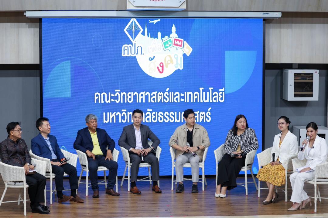 โดยสังคมอุดมศึกษาถือเป็นกลุ่มเป้าหมายที่สำคัญ เนื่องจากปัจจุบันประเทศไทยมีนักศึกษาในสังกัดสถาบันอุดมศึกษามากกว่า 1,600,000 คน (ข้อมูล ณ 1 ตุลาคม 2567) ซึ่งจะเติบโตเพื่อเป็นกำลังสำคัญในการพัฒนาสังคม และขับเคลื่อนเศรษฐกิจของประเทศในอนาคต แต่เมื่อพิจารณาจากอัตราการว่างงานภายในประเทศในเดือนสิงหาคม 2567 พบว่าประเทศไทยมีแรงงานในระบบอยู่ที่ 40.39 ล้านคน มีจำนวนผู้ว่างงาน 440,000 คน เมื่อจำแนกตามระดับการศึกษาแล้ว กลุ่มบัณฑิตซึ่งจบการศึกษาในระดับอุดมศึกษา เป็นกลุ่มที่มีจำนวนผู้ว่างงานมากที่สุด ถึงประมาณ 169,000 คน และจากจำนวนดังกล่าวเป็นกลุ่มบัณฑิตผู้ที่ไม่เคยทำงานมาก่อนถึง 122,000 คน หรือประมาณร้อยละ 72.19 ของผู้ว่างงานที่สำเร็จการศึกษาในระดับอุดมศึกษา จากข้อมูลดังกล่าวอาจสะท้อนถึงทักษะของบัณฑิตจบใหม่ที่ไม่ตรงกับความต้องการของตลาด และปัญหาเชิงโครงสร้างในตลาดแรงงาน ดังนั้น การให้ความรู้เรื่องเส้นทางอาชีพ ทักษะที่จำเป็น รวมทั้งความต้องการของตลาดแรงงาน จะสามารถเป็นตัวช่วยให้อัตราการว่างงานของนักศึกษาจบใหม่ลดน้อยลงได้ ด้วยเหตุผลดังกล่าว สำนักงาน คปภ. จึงเลือกคณะวิทยาศาสตร์และเทคโนโลยีมหาวิทยาลัยธรรมศาสตร์ เป็นตัวแทนของการถ่ายทอดเรื่องราวของสังคมอุดมศึกษา เนื่องจากเล็งเห็นว่าสถาบันแห่งนี้เป็นแหล่งผลิตบุคลากรเข้าสู่ระบบประกันภัย อาทิ นักคณิตศาสตร์ประกันภัย นักจัดการความเสี่ยง นักวิเคราะห์วางแผนในธุรกิจประกันภัย นายหน้าประกันภัย หรือการเข้ามาเป็นพนักงานของสำนักงาน คปภ. ในอนาคต อันจะเป็นฟันเฟืองที่สำคัญในการขับเคลื่อนธุรกิจประกันภัยให้เติบโตอย่างยั่งยืนต่อไป ทั้งนี้ ได้มีการแบ่งปันความรู้และประสบการณ์ทำงานด้านประกันภัยจากรุ่นพี่สู่รุ่นน้องจากศิษย์เก่าโดย ดร.ชญานิน เกิดผลงาม รองเลขาธิการ ด้านกลยุทธ์และเทคโนโลยี สำนักงาน คปภ. ต่อด้วยเวทีเสวนาในหัวข้อ “เส้นทางอาชีพด้านการประกันภัยของนักศึกษาคณะวิทยาศาสตร์และเทคโนโลยี มหาวิทยาลัยธรรมศาสตร์” ซึ่งได้รับเกียรติจากวิทยากร ประกอบด้วย รองศาสตราจารย์ ดร.กมล บุษบา สาขาวิชาคณิตศาสตร์และสถิติ คณะวิทยาศาสตร์และเทคโนโลยี มหาวิทยาลัยธรรมศาสตร์ ดร.พงษ์ภาณุ ดำรงศิริ ผู้อำนวยการบริหาร สมาคมประกันวินาศภัยไทย นายจรุง เชื้อจินดา รองผู้อำนวยการบริหาร สมาคมประกันชีวิตไทย นายจิตวุฒิ ศศิบุตร นายกสมาคมนายหน้าประกันภัยไทย นายกฤษณ์ วณิชเดโชชัย สมาคมตัวแทนประกันชีวิตและที่ปรึกษาการเงิน นางคณิญาภร จรุงกิจกุล ผู้ทรงคุณวุฒิ ด้านบริหารยุทธศาสตร์และสารสนเทศ สำนัก